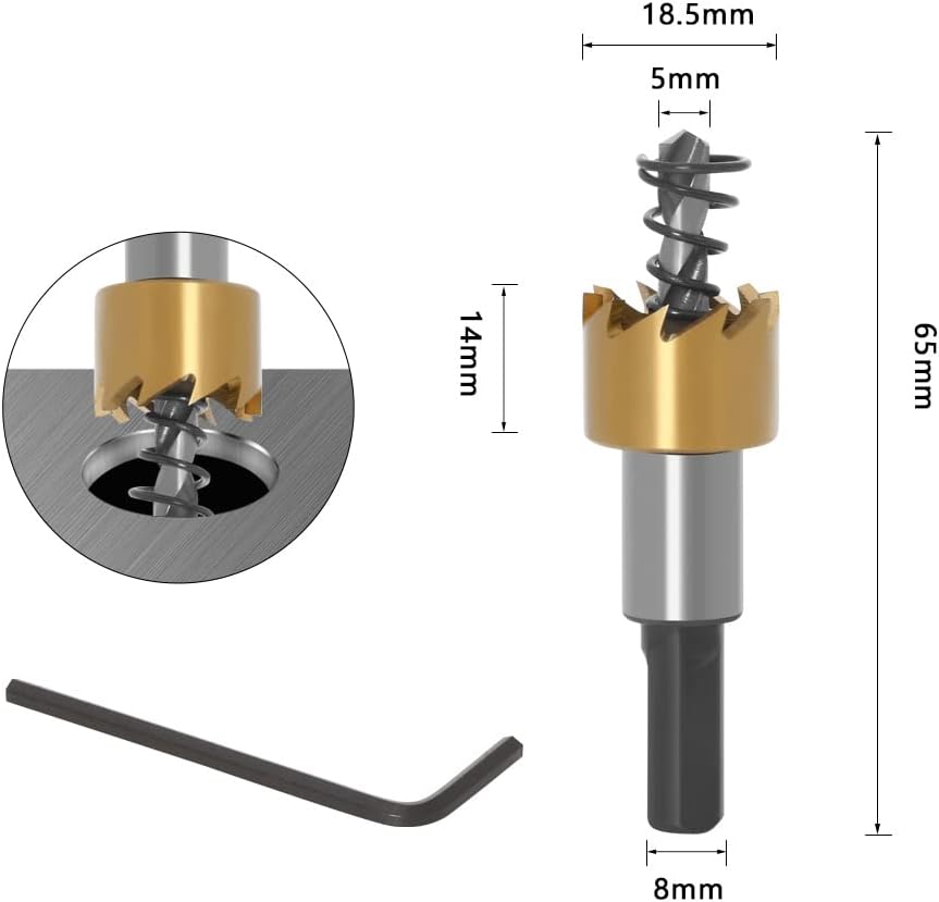 Outside Diameter Size: 16mm/0.62in(5/8-Inch), 18.5mm/0.73in(3/4-Inch), 20mm/0.78in(4/5-Inch), 25mm/0.98in(1 Inch), 30mm/1.18in(1-3/16 Inch). There are 5 size of hole saw kit to meet your professional needs.