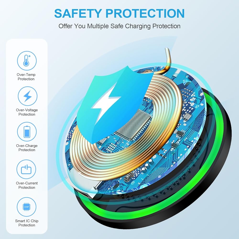 Silicone material on the bottom of the charger prevents your phone from sliding and ensures stable charging.