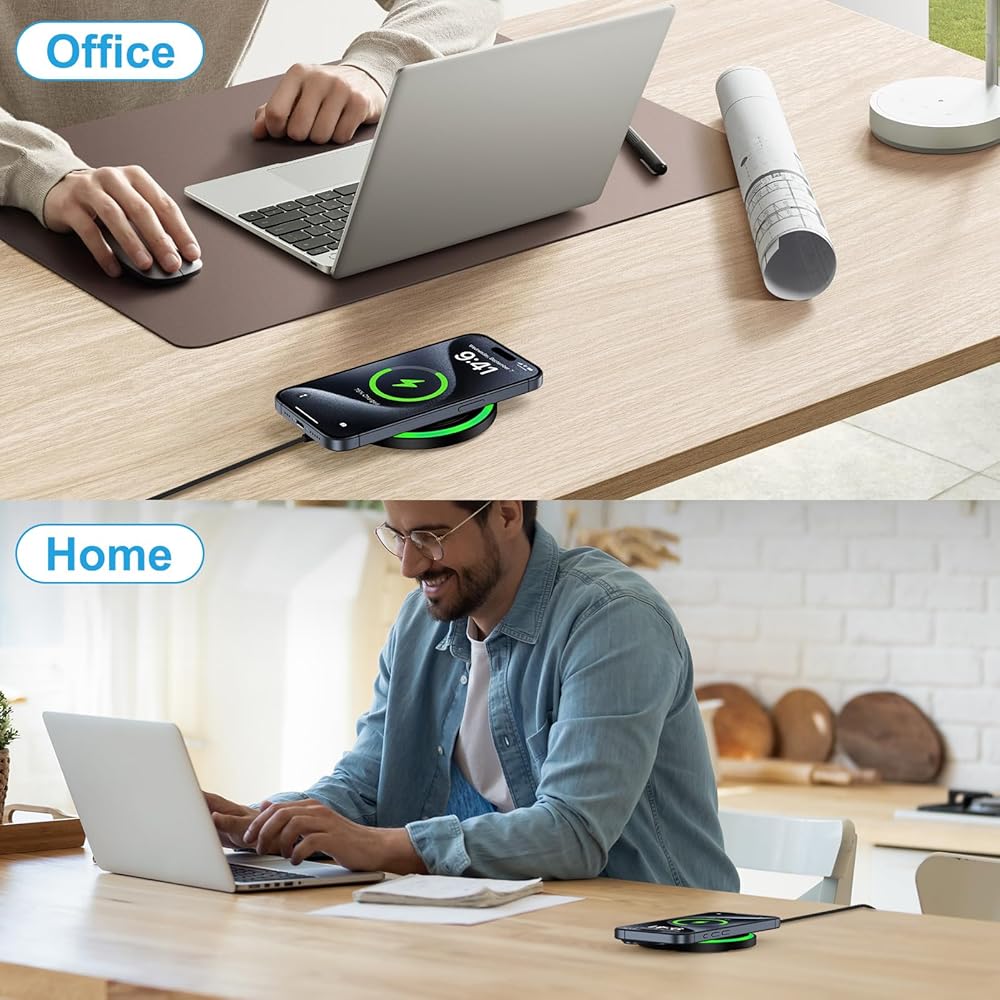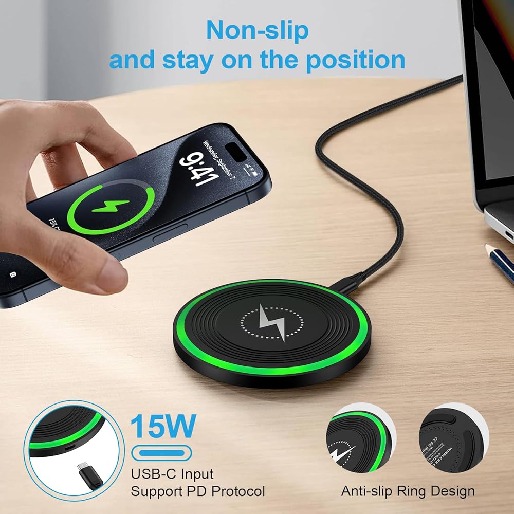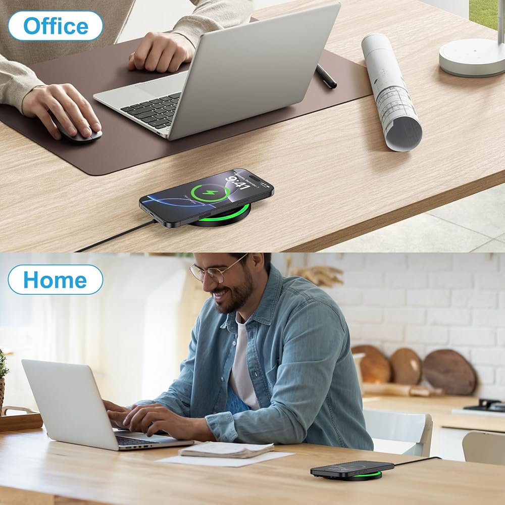 Simply place your phone on the wireless charger—no need to plug and unplug. Ensure your phone is centered on the phone charging pad for stable charging.
