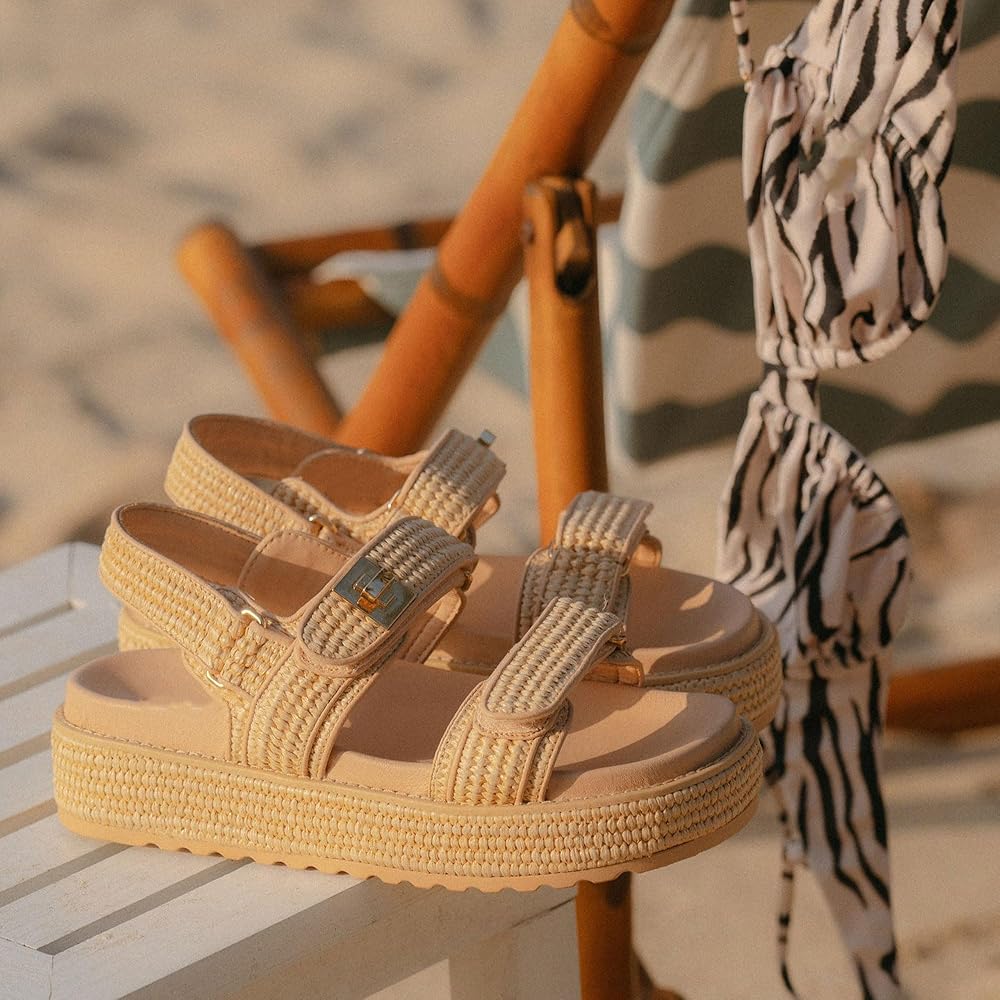 الرافية منصة صندل خشبي للنساء قابل للتعديل مشبك معدني النعال المسطحة Slingback المفتوحة تو الانزلاق على صنادل الشاطئ