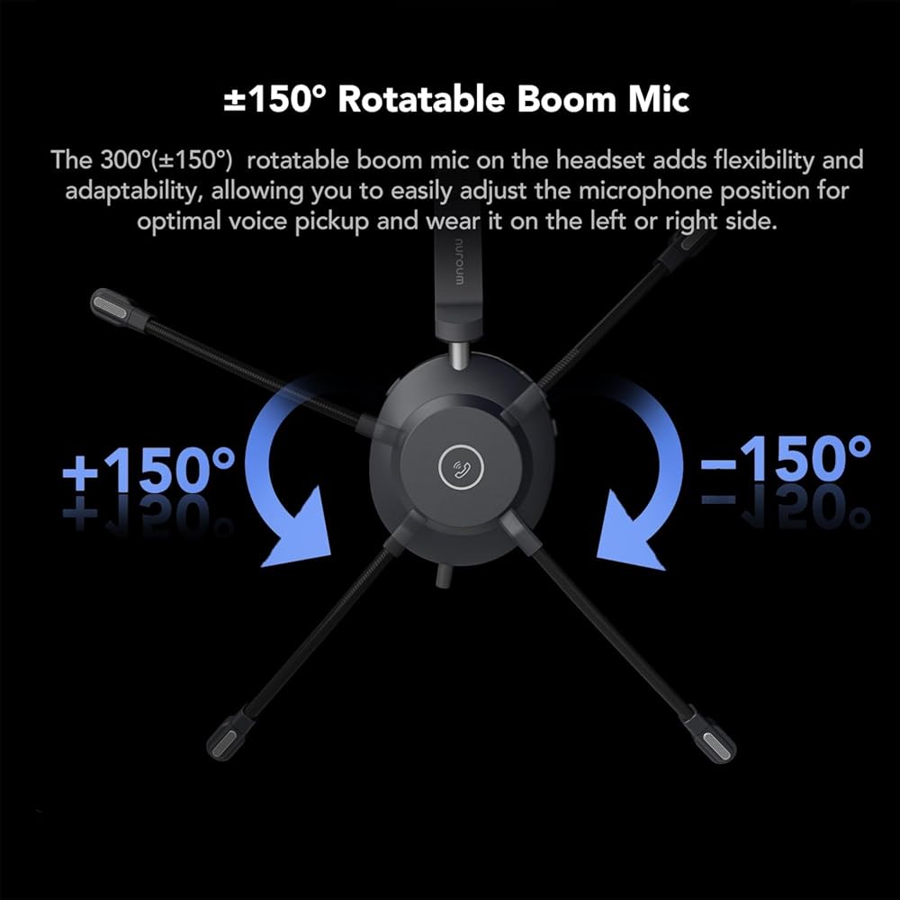【تعديل مرن لارتداء قابل للتخصيص】استمتع بخيارات ارتداء قابلة للتخصيص مع سماعات الرأس السلكية الخاصة بنا. يسمح الميكروفون القابل للدوران والانحناء بزاوية 300 درجة بوضعه على أي من الأذنين ووضعه بدقة بالقرب من الفم لالتقاط صوت أكثر وضوحًا. بالإضافة إلى ذلك، يوفر تصميم عصابة الرأس القابلة للتعديل ووسادة الأذن القابلة للدوران المرونة لتناسب أي شكل وحجم للرأس، مما يضمن راحة ارتداء مخصصة حسب تفضيلاتك.