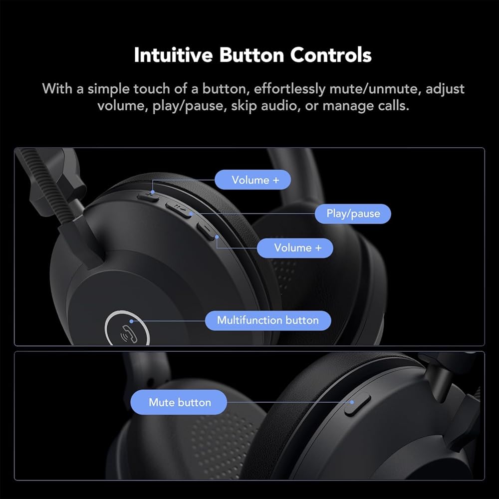 أزرار مدمجة لسهولة التحكم: تم تجهيز سماعة العمل HP21 بخمسة أزرار مريحة للتحكم الصوتي السلس. يتضمن ذلك زر كتم صوت مستقل للتحكم في الميكروفون أثناء المكالمات، وزر اتصال متعدد الوظائف للرد على المكالمات الهاتفية أو تعليقها، وأزرار مخصصة للصوت بالإضافة إلى زر تشغيل/إيقاف مؤقت للتحكم في الموسيقى. بفضل وضع الزر البديهي، يمكنك إدارة تجربتك الصوتية دون عناء لتعزيز الراحة والإنتاجية.