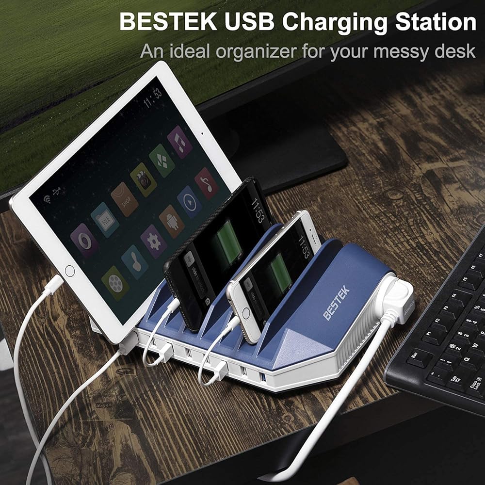 توفير المساحة: حامل شحن سطح المكتب وتصميم منفذ طاقة 12 في 1، محطة شحن BESTEK USB هي أداة تنظيم مثالية لسطح المكتب الفوضوي الخاص بك