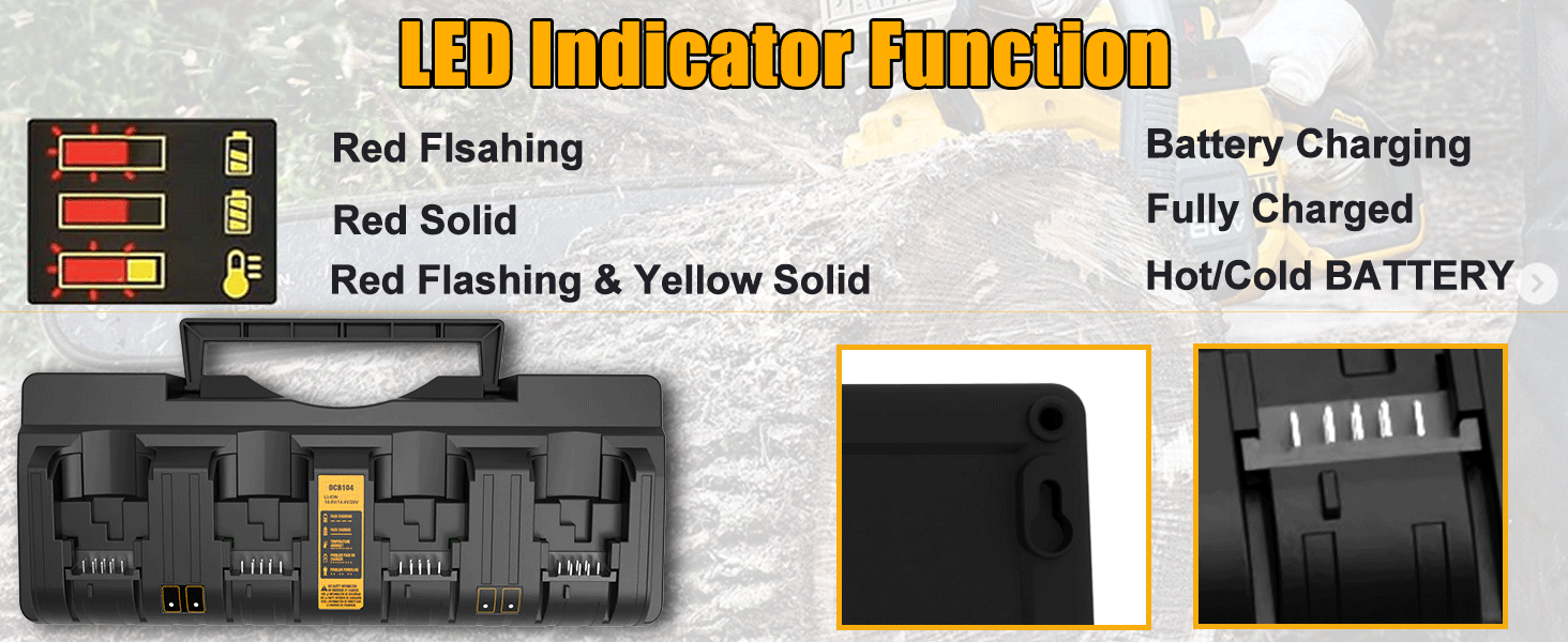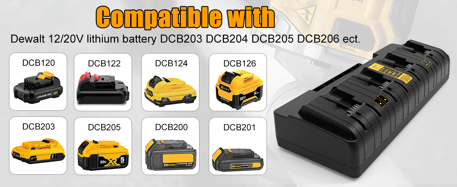 استبدال الشاحن السريع Energup لشاحن Dewalt 20V Max، 4 منافذ (DCB104)