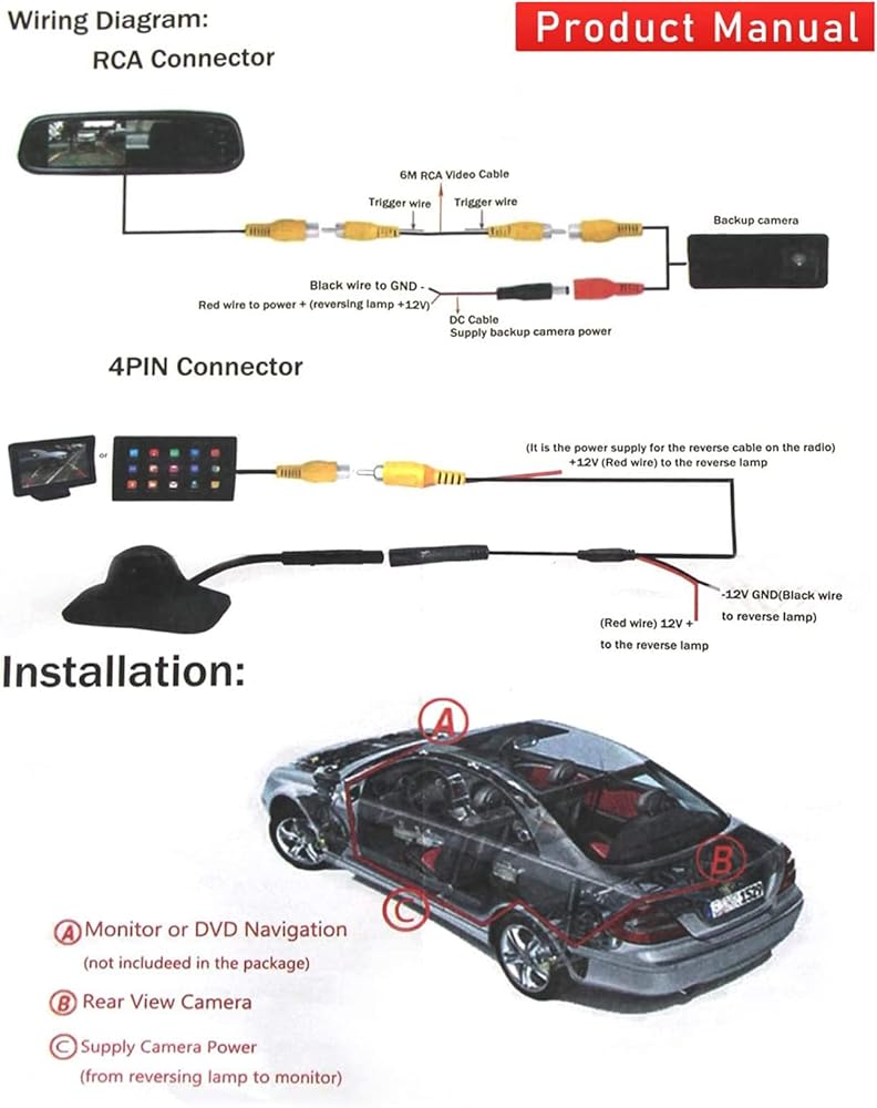 Ideal Auto Backup Camera: Suit for 12-24V DC Power. 8M RCA video cable protected with PA plastic bellows. Which offers perfect protection against the acid, lubricating oil abd coolant, can work constantly for long time. With the help of wired universal Tundra reversing camera, you won't be disturbed when you reverse your Toyota Tundra even in adverse environment.