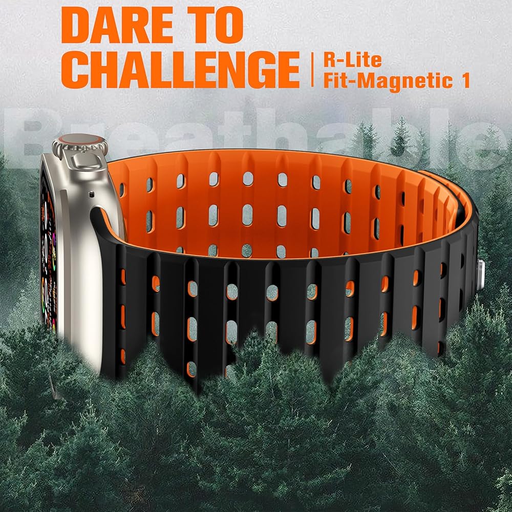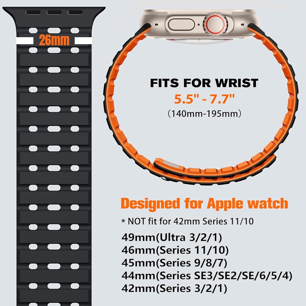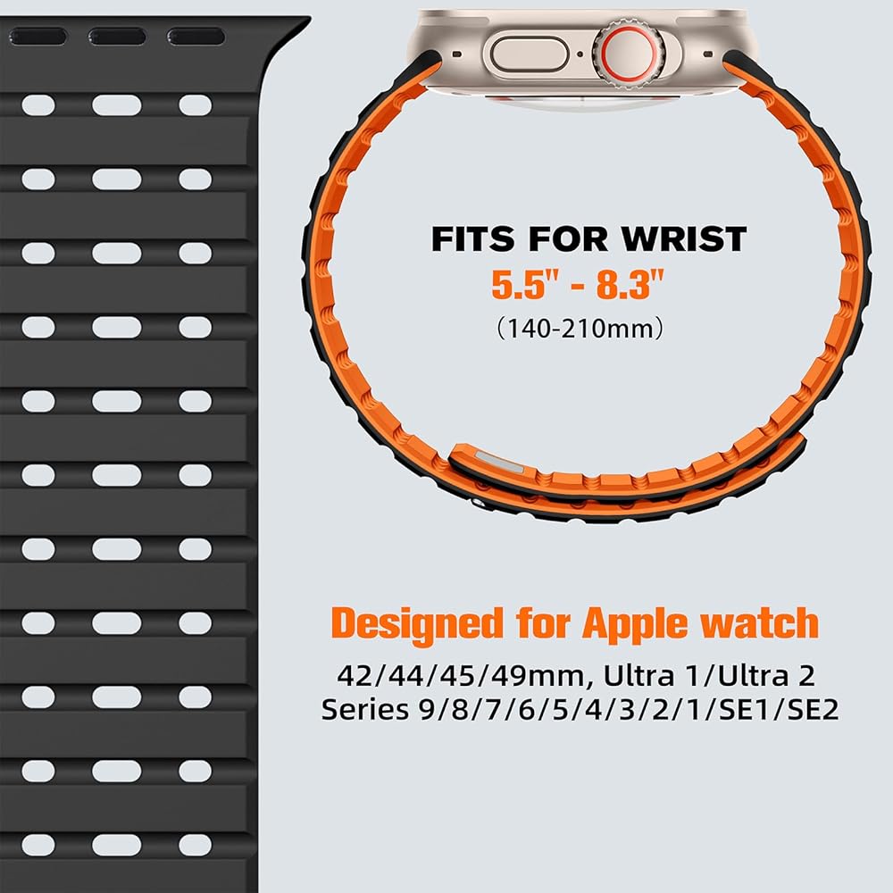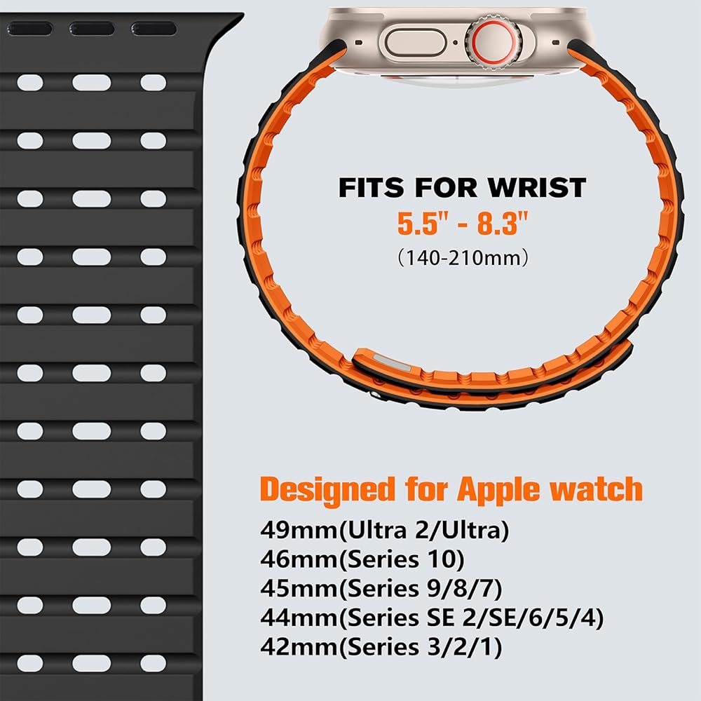 ⛷[هيكل تهوية محسّن] يتميز بهيكل تهوية محسّن بفتحات إضافية، ويضمن حزام Apple Watch Ultra الرفيع التهوية والتهوية للعرق، مما يعزز الراحة أثناء الارتداء. لا يعمل هذا التصميم على تحسين مقاومة العرق والأداء المقاوم للماء فحسب، بل يضفي على السوار أيضًا إحساسًا بالبساطة والخفة، مما يعزز الراحة والاسترخاء