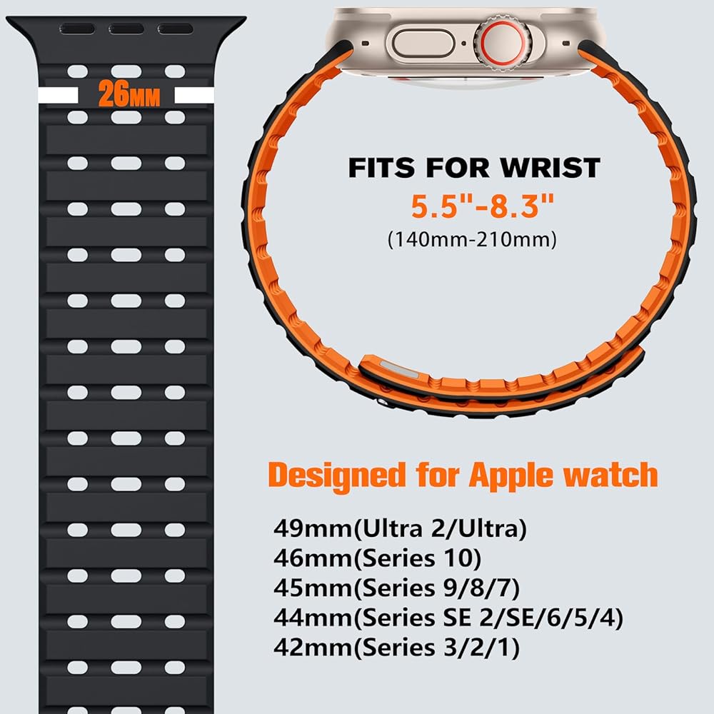 🏄【تصميم مطور من السيليكون والبلوري】 يتميز سوار الساعة المغناطيسي بعرض 26 مم والمتوافق مع Apple Watch Ultra 2 بهيكل من السيليكون عالي الجودة، مما يوفر النعومة والمتانة والملاءمة للبشرة. تمت معالجة السطح بملمس بلوري وتعديل للأشعة فوق البنفسجية، مما يجعله أكثر مقاومة للغبار، ويعزز حساسية اللمس، ويقدم تجربة مذهلة بصريًا
