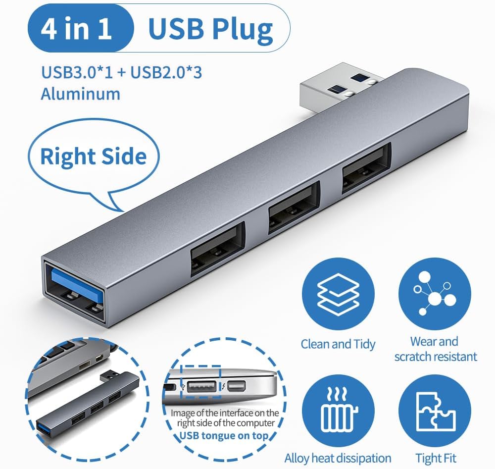 Special designed for Laptop: Expand 4 USB ports, compact and tight fit, simple but useful.