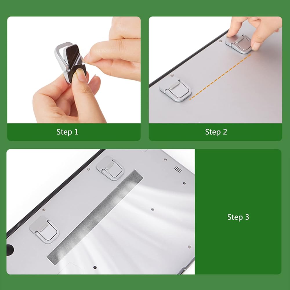 Removable/reusable, can leave them on the computer when you put in in your bag when you do not need to raise the laptop.