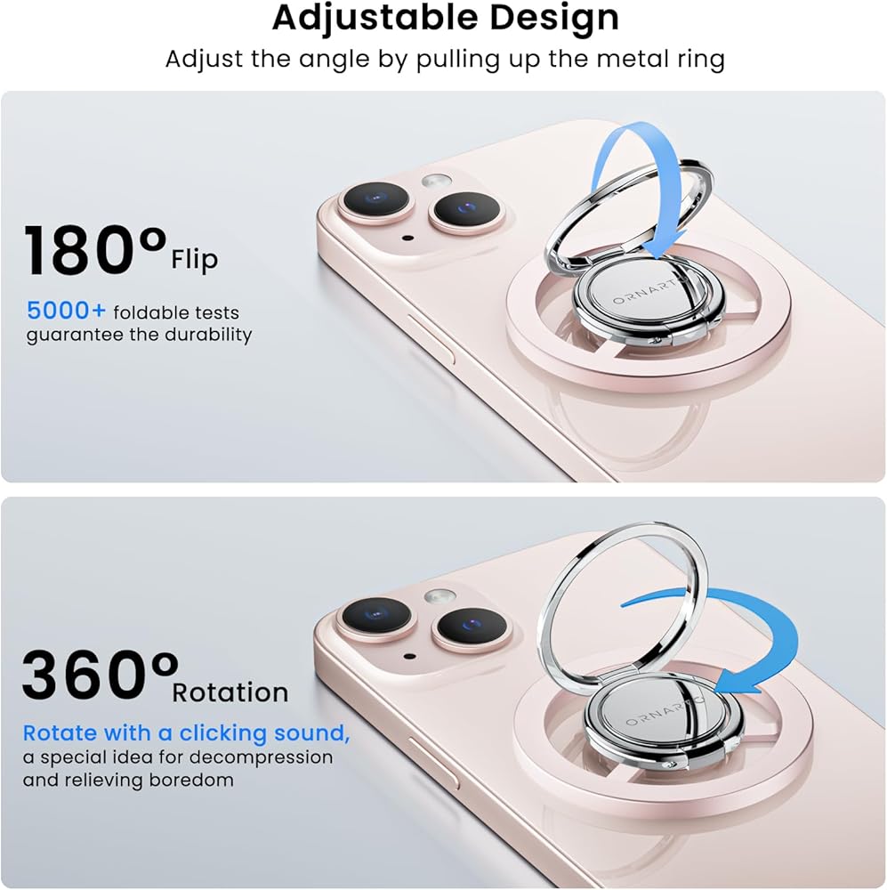 【دوران 360 درجة وقلب 180 درجة في مادة فاخرة】مع زوايا قابلة للتعديل وتصميم مزدوج الحلقة، يوفر مقبض الهاتف الخاص بنا المتوافق مع mag Safe زوايا رؤية مثالية ومريحة لاستكشاف الإمكانيات غير المحدودة، وتم اختبار حامل حلقة الهاتف المغناطيسي لتحمله. أكثر من 6000 طيات بدون مفصلات فضفاضة. مصنوعة من سبيكة الزنك عالية الجودة، والمعدن وعملية مؤكسدة، تمنحك دائمًا ملمسًا معدنيًا فاخرًا وعمرًا طويلًا.