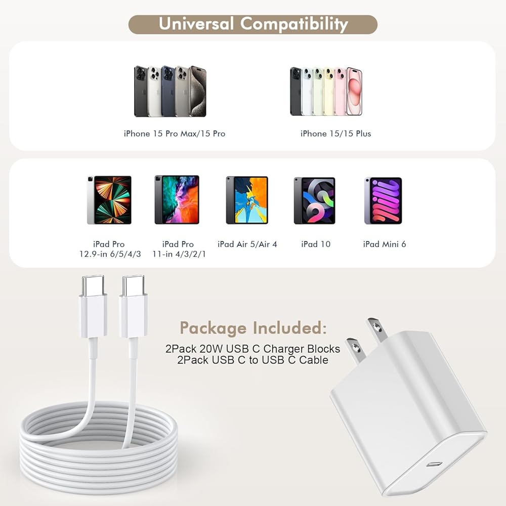 20W USB-C iPhone charger block + 3FT USB-C to Type C charging cord