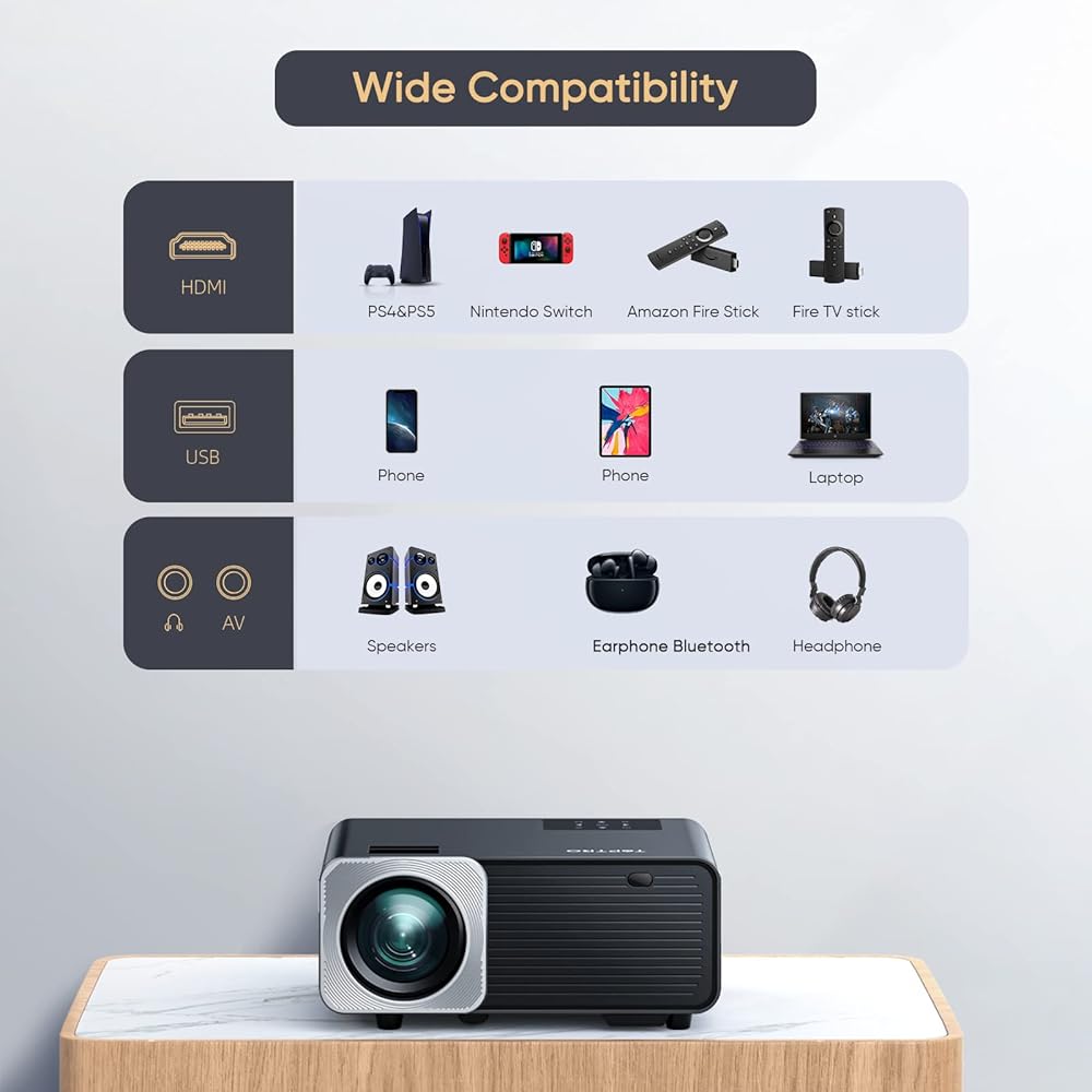 💖【يدعم 4K وتقنية تقليل الضوضاء الذكية】جهاز العرض TR22 wifi مجهز بالشريحة الرئيسية، وقوة الحوسبة NPU هي 8000 تريليون مرة في الثانية، ودقة صورة أقوى. تعمل تقنية تقليل الضوضاء الذكية المطورة ذاتيًا على تحسين ضوضاء الصورة، مع وداعًا لجودة الصورة غير الواضحة. يدعم تشغيل الفيديو بدقة 4K، وسطوع عالي 500ANSI Lumen، وأكثر ألوانًا من أجهزة عرض WiFi Bluetooth الأخرى بدقة 1080 بكسل، وسوف يمنحك وليمة بصرية حقيقية.