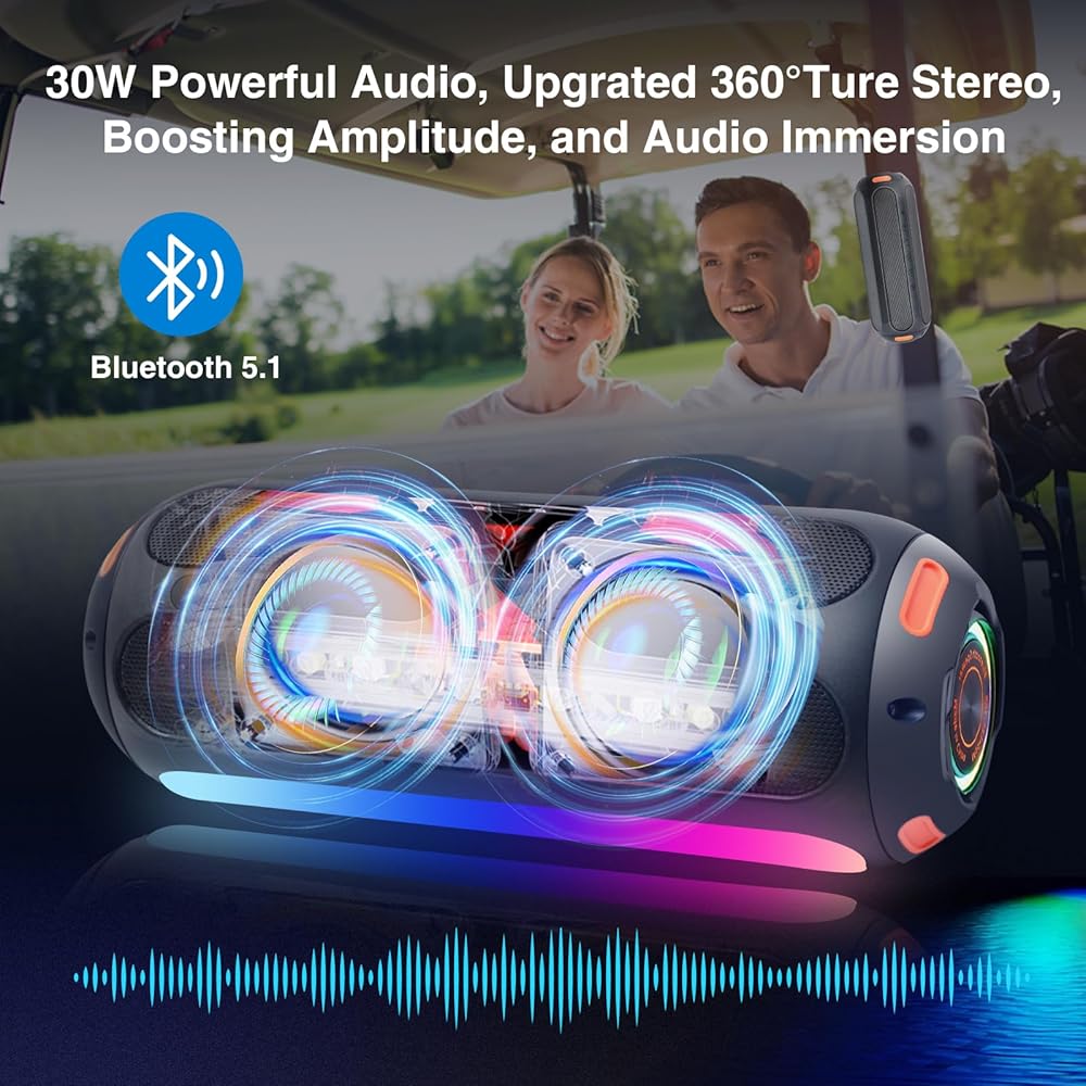 【إضاءة ديناميكية بـ 7 ألوان 】إنها ليست مجرد مكبر صوت لعربة الجولف، ولكنها أيضًا عرض ضوئي. تتراقص الأضواء الملونة مع الموسيقى، وتوفر أوضاعًا مختلفة لخلق جو شخصي.