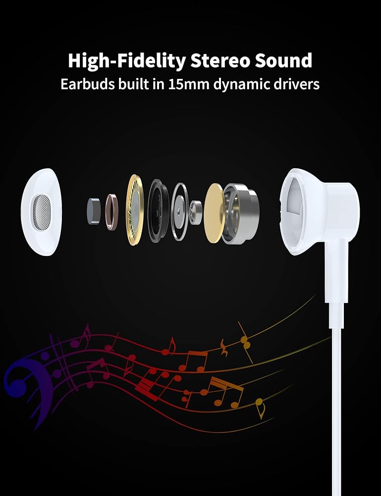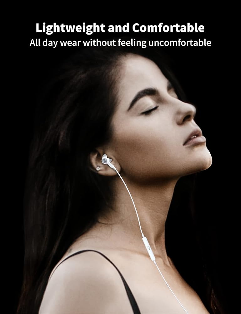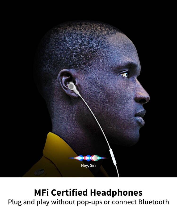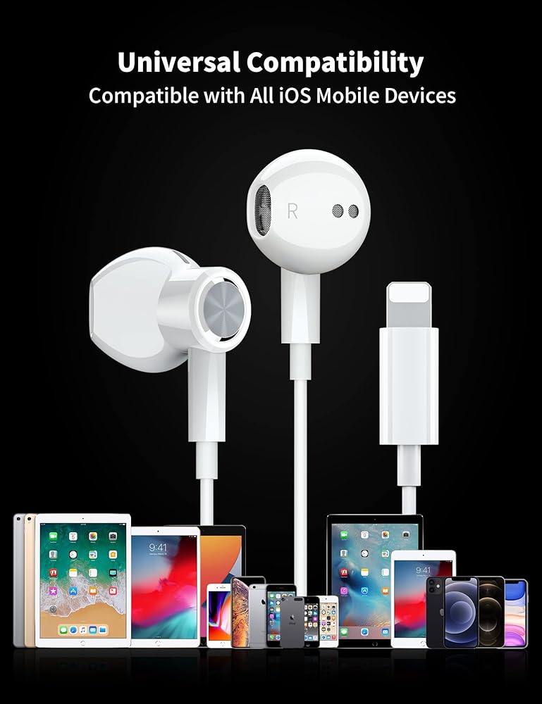 سماعة أذن لايتنينج معتمدة من Mfi - سماعة رأس سلكية لايتنينج معتمدة رسميًا من MFi مع جميع أجهزة الهواتف المحمولة التي تعمل بنظام iOS؛ بدون النوافذ المنبثقة أو توصيل Bluetooth أو موصل إضافي؛ شريحة قوية مدمجة للحفاظ على الدقة العالية، بدون طنين أو فرقعة أو أي مشكلات صوتية سيئة، مما يسمح لك بالاستمتاع بتجربة موسيقية مذهلة وتجربة الاستماع الشاملة لصوت ستيريو هاي فاي العميق.