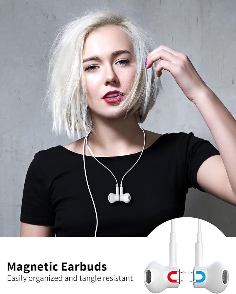 سماعات أذن مغناطيسية لهاتف iPhone - كل سماعة أذن مزودة بمغناطيس أسفل الغلاف وهي مريحة للربط مغناطيسيًا، حتى تتمكن من ارتدائها حول رقبتك عندما لا تكون قيد الاستخدام والوصول إليها مباشرة دون أي تشابك