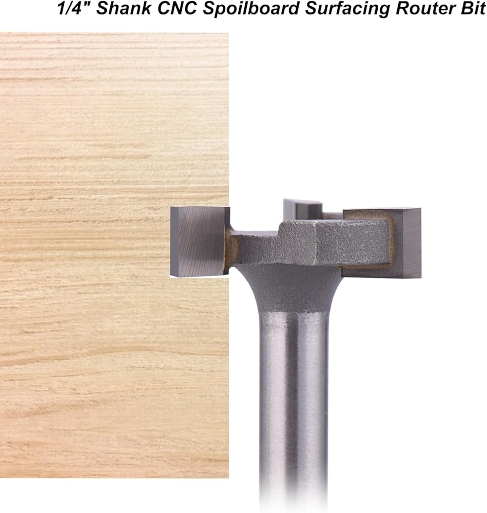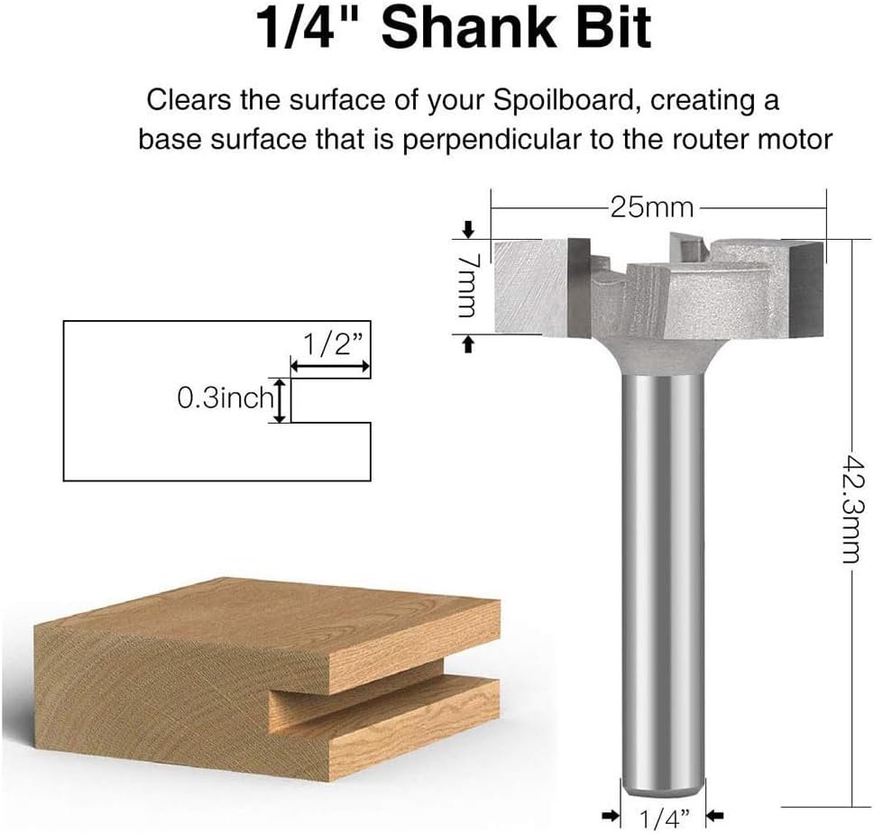 • Precise Size: Precise 3 wings can cut your project materials quickly and cleanly. 1/4 inch shank CNC Spoilboard surface milling cutter, 1/4 cutting height, 1 (25.4mm) cutting diameter.