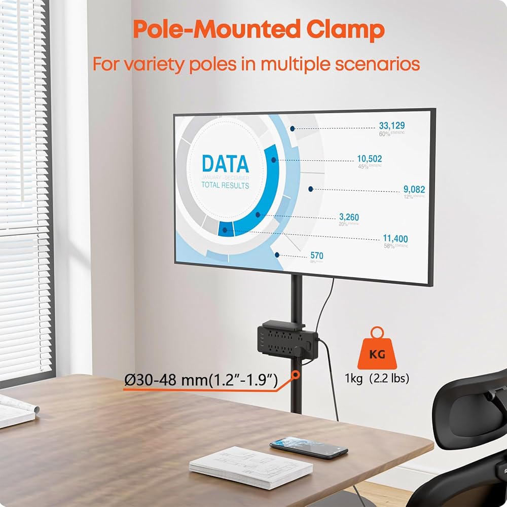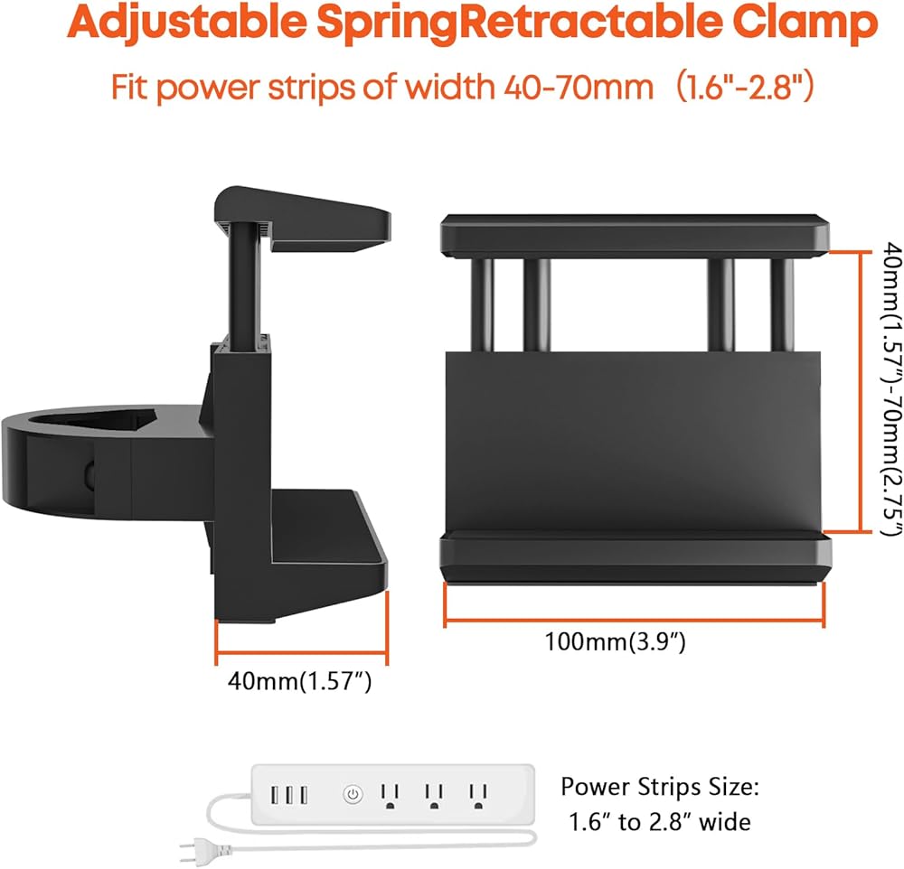 استخدام متعدد الاستخدامات: مشبك مثبت على عمود على شريط الطاقة يمكن تطبيقه على أي عمود دائري بقطر 1.2 بوصة - 1.9 بوصة. المشبك الزنبركي القابل للسحب يناسب معظم المقابس التي يتراوح عرضها من 1.6 سم إلى 2.8 سم. يحمل ما يصل إلى 2.2 رطل.
