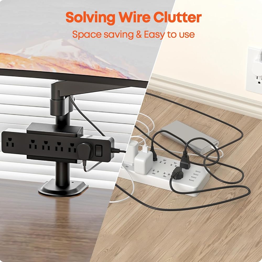 سهلة التركيب: لا حاجة إلى التجميع، اضبط البراغي لتناسب القضبان الدائرية ذات القطر المختلفة. تعمل وسادات السيليكون الموجودة في الداخل والوسادات الإسفنجية في الخارج على تثبيت منفذ الطاقة بشكل آمن وحماية سطح المكتب.