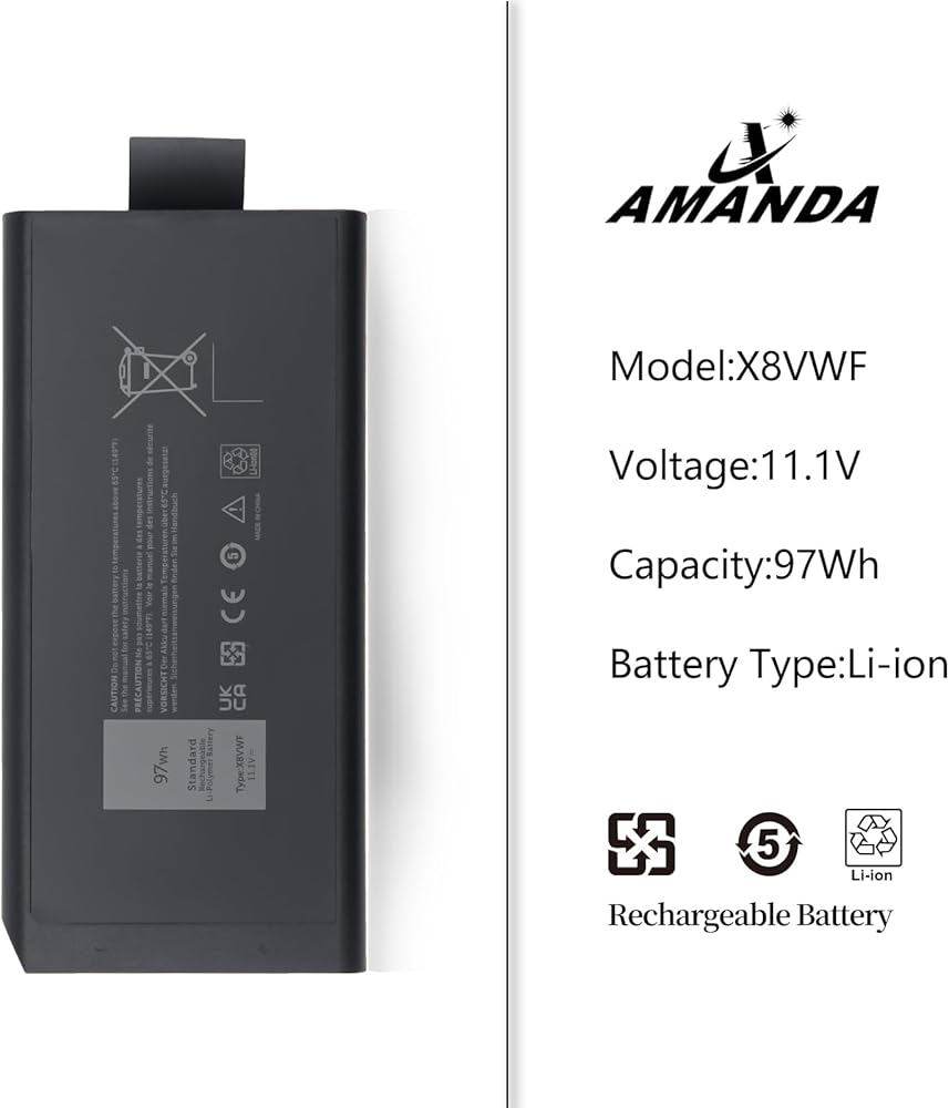 نوع البطارية: ليثيوم بوليمر الجهد: 11.1 فولت السعة: 97 وات في الساعة/ 8700 مللي أمبير في الساعة الخلية: 9 خلايا.