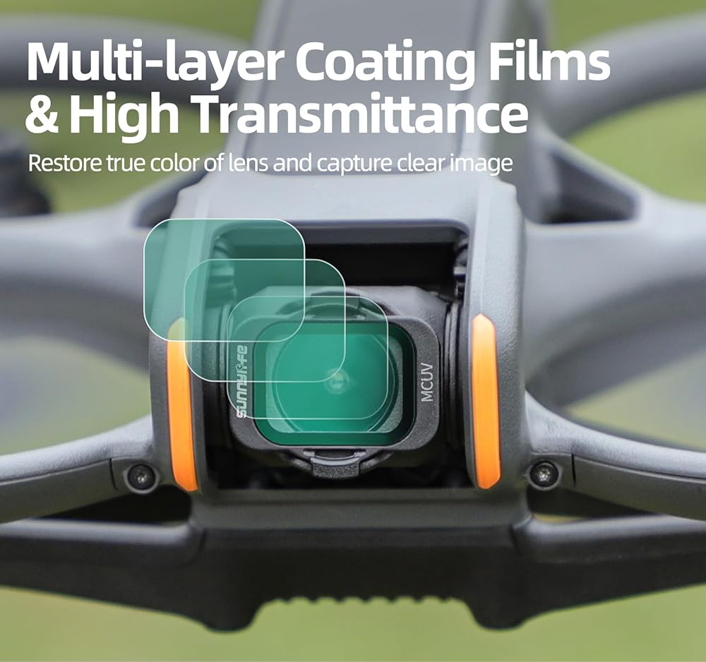 • 【Multi-Layer Coating Protection】The Avata 2 filters are coated with multiple layers of coatings for high light transmission, restoring the natural color of the lens to capture clear images, waterproof, oilproof and anti-scratch, effectively protecting the camera lens.