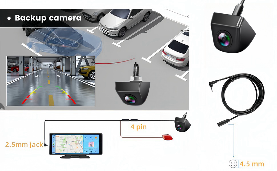 🚘كاميرا الرؤية الخلفية العالمية: التوافق مع طاقة 12 فولت تيار مستمر، مما يجعلها مثالية للسيارات والشاحنات والمزيد من المركبات. كابل فيديو 26 قدم 4 سنون يدعم الاتصال بشاشة carplay، أو كاميرا مرآة، أو كاميرا داش، أو أي شاشة عرض مع مدخلات فيديو 4 سنون.