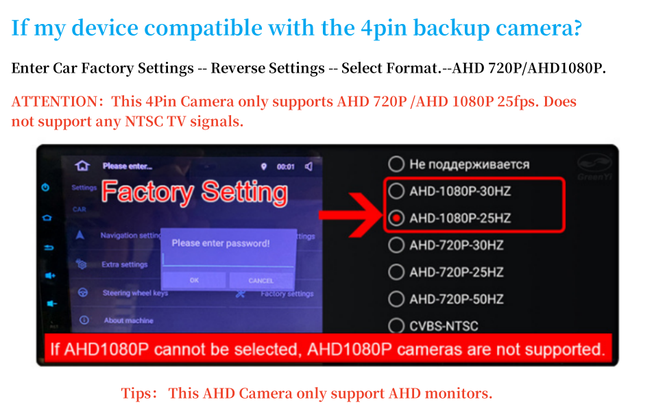 🚘وظائف متعددة الاستخدامات: يمكنك تبديل الأوضاع بسهولة بين صورة HD 1080P وصورة 720P. صورة HD افتراضية بدون خط إرشادي. يمكنك تبديل الأوضاع وفقًا للدليل. سيؤدي قطع الخط الأبيض إلى عرض الخط الإرشادي، وسيصبح قطع الخط الأخضر صورًا أمامية. أعد توصيل السلك المقطوع للعودة إلى وضع العرض الأصلي.