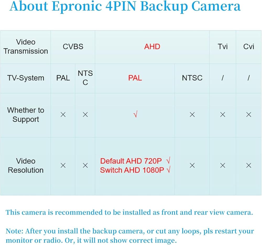 🚘متين ومقاوم للماء: يضمن تصنيف IP68K المقاوم للماء المتانة والموثوقية في مختلف الظروف الجوية، مما يجعله مناسبًا للاستخدام في جميع البيئات. تم تصميم هذه الكاميرا عالية الجودة لتوفر لك صورة عالية الوضوح وواضحة للغاية، مما يضمن لك رؤية مثالية ليلاً أو نهارًا.