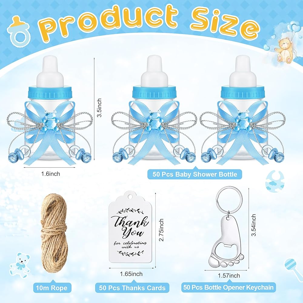 Material Usage: our baby shower favors for guests are crafted using the quality materials; Baby shower bottles are made of a quality plastic that is sturdy yet lightweight, ensuring they can last for a long period; The bottle openers are made from a durable alloy that does not rust or degrade over time, providing you with a highly practical and lasting memento