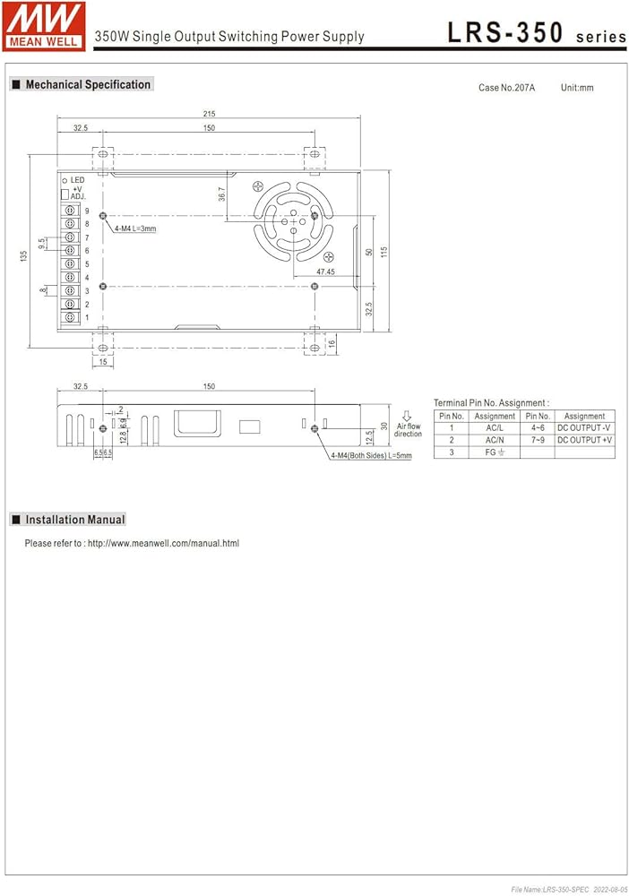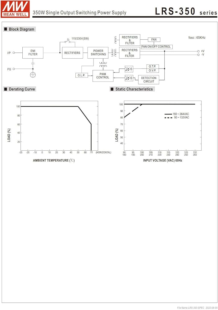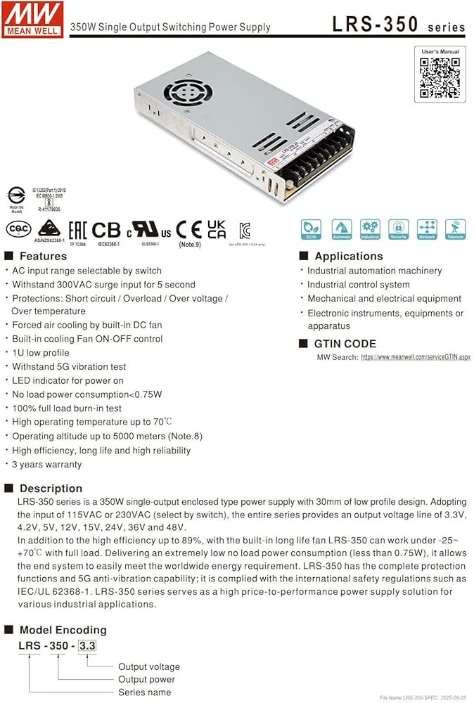 LRS-350 series is a 350W single output enclosed type power supply with 1.18inch of low profile design. Adopting the input of 115VAC or 230VAC(Select by switch). In addition to the high efficiency up to 89%, with built in long life fan, LRS-350 can work under 35F-158F with full load. Delivering an extremely low no load power consumption( less than 0.75W)