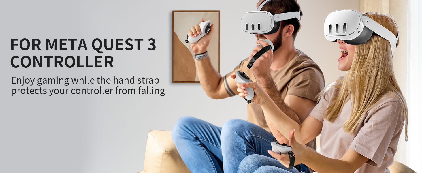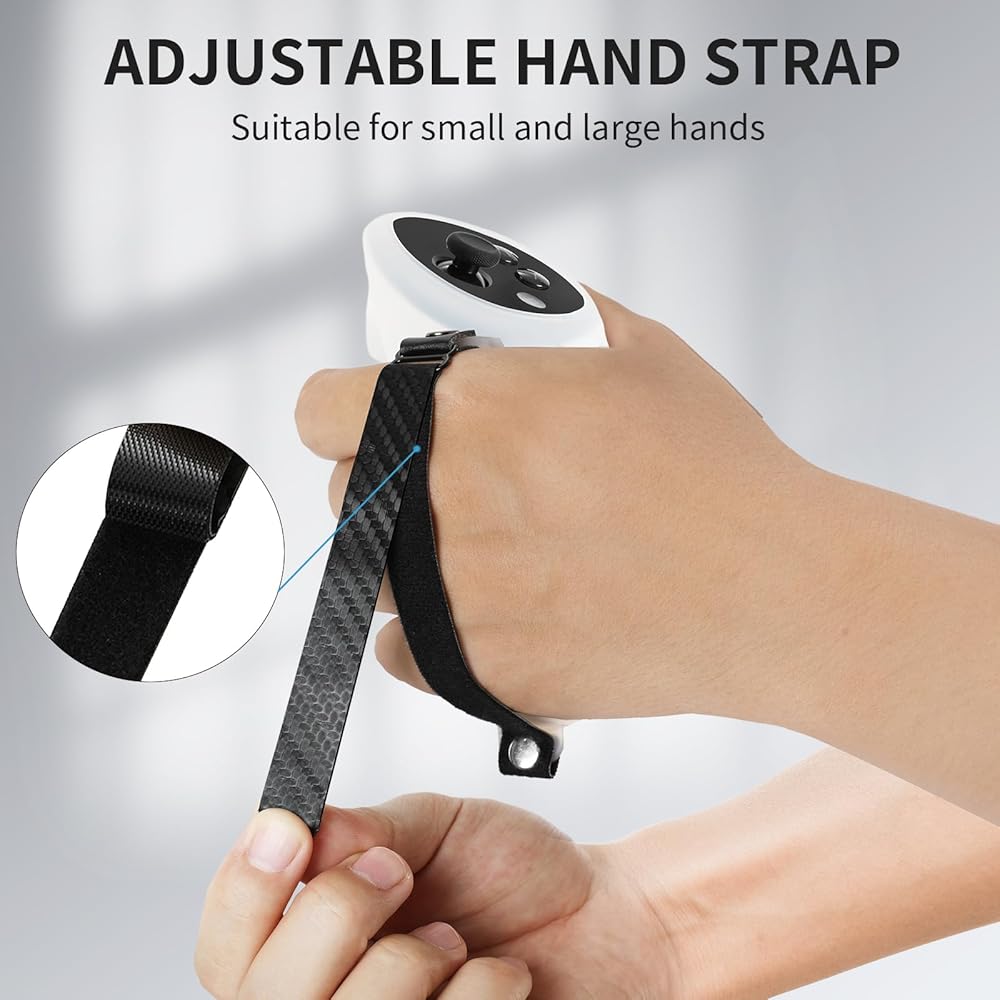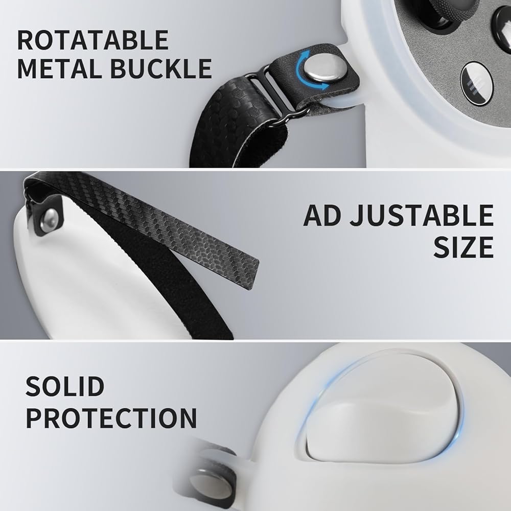 جهاز أمان وحدة التحكم - يوفر غطاء قبضة السيليكون لوحدة التحكم حماية آمنة لمقبض Quest 3. يمكن لغطاء السيليكون أن يحمي بشكل فعال من الأضرار الناجمة عن السقوط والاصطدامات. حزام المعصم القابل للتعديل يناسب يدك بشكل آمن لمنعها من السقوط، مما يجعل اللعب أكثر راحة، إنه أكثر متعة!