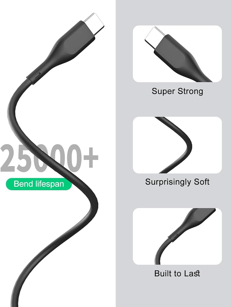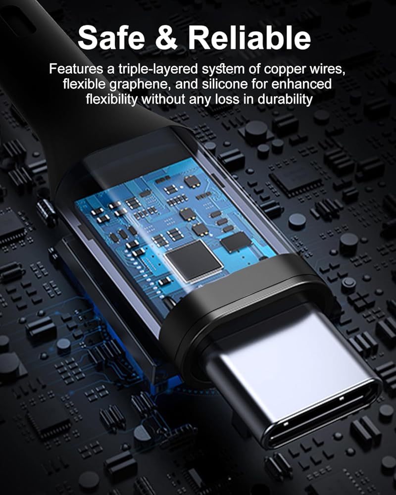 كابل عالي الجودة: يعتمد عملية تصميم من ثلاث طبقات مع سلك نحاسي نقي، وجرافين مرن، والسيليكون، مما يوفر ملمس سيليكون ناعم ومتانة استثنائية مع مقاومة انحناء تصل إلى 25,000 دورة، مما يطيل عمر الخدمة بشكل كبير.