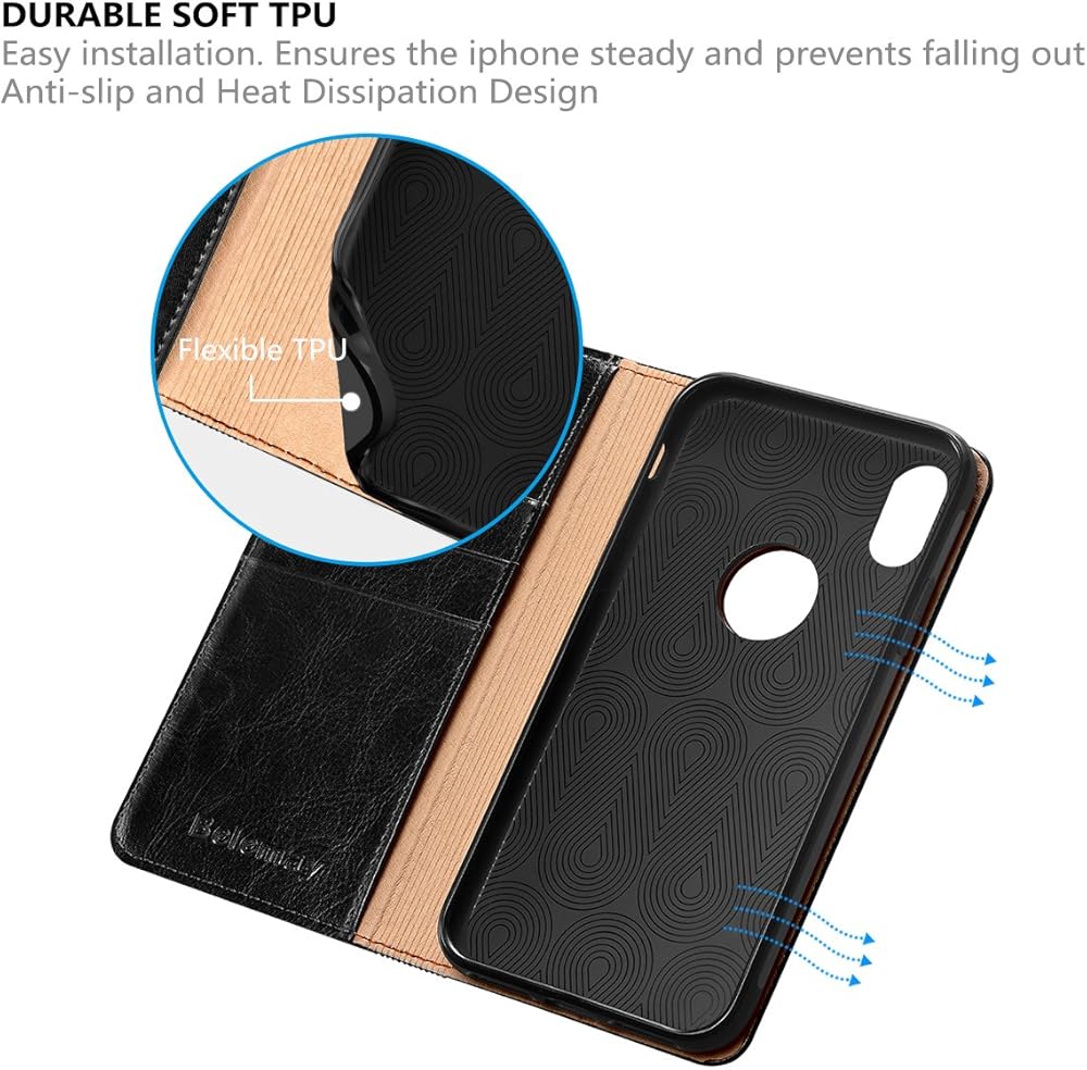 PREMIUM GENUINE LEATHER: Hand crafted and made from superfine genuine cowhide leather. Awesome stitching completes the great design. The detailed work of our professional artisans is noticeable even with naked eye. Combination of the fashion enthusiastic makes BELEMAY wallet case for iPhone Xs Max practical and elegant at the same time.