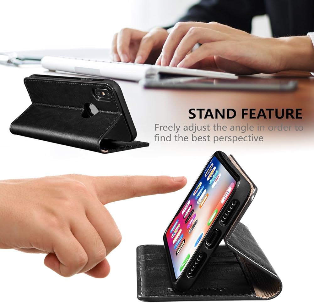 CONVENIENT: This foldable cover can be used as an adjustable kickstand, gives your iPhone Xs Max (6.5-inch Display) a comfortable viewing angle while not adding thickness to your flip case. Precise cutouts for Camera, speakers, earpiece and other functional ports provide easy access to all functions. Change the volume, answer a call, charge your battery, take a picture, and listen to music without ever having to remove your wallet case. (Support wireless charging).