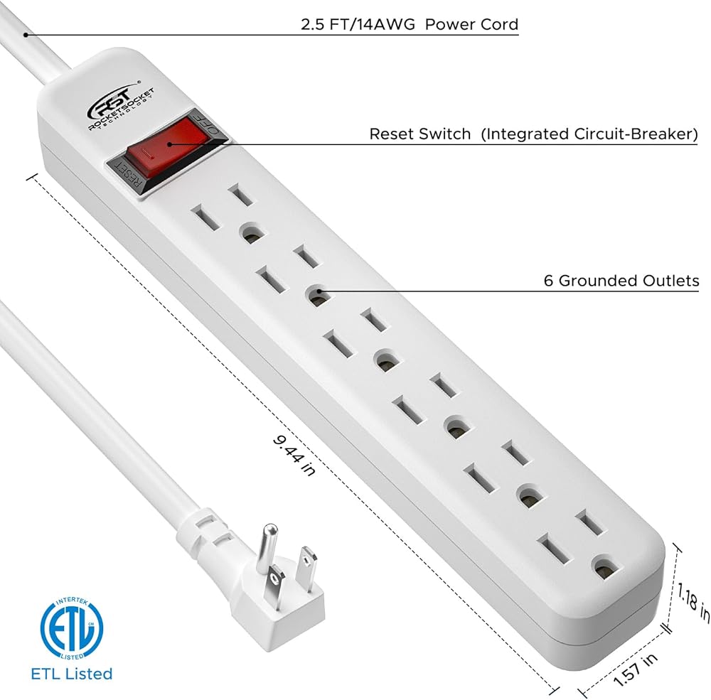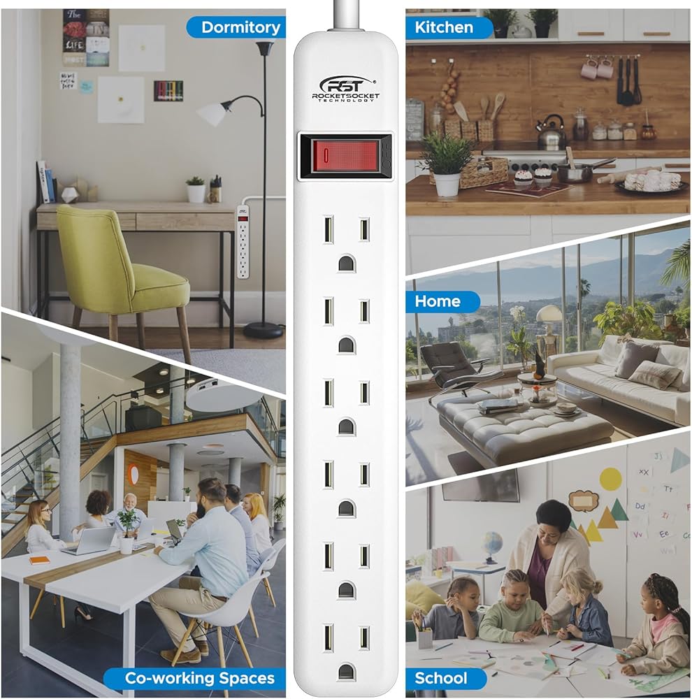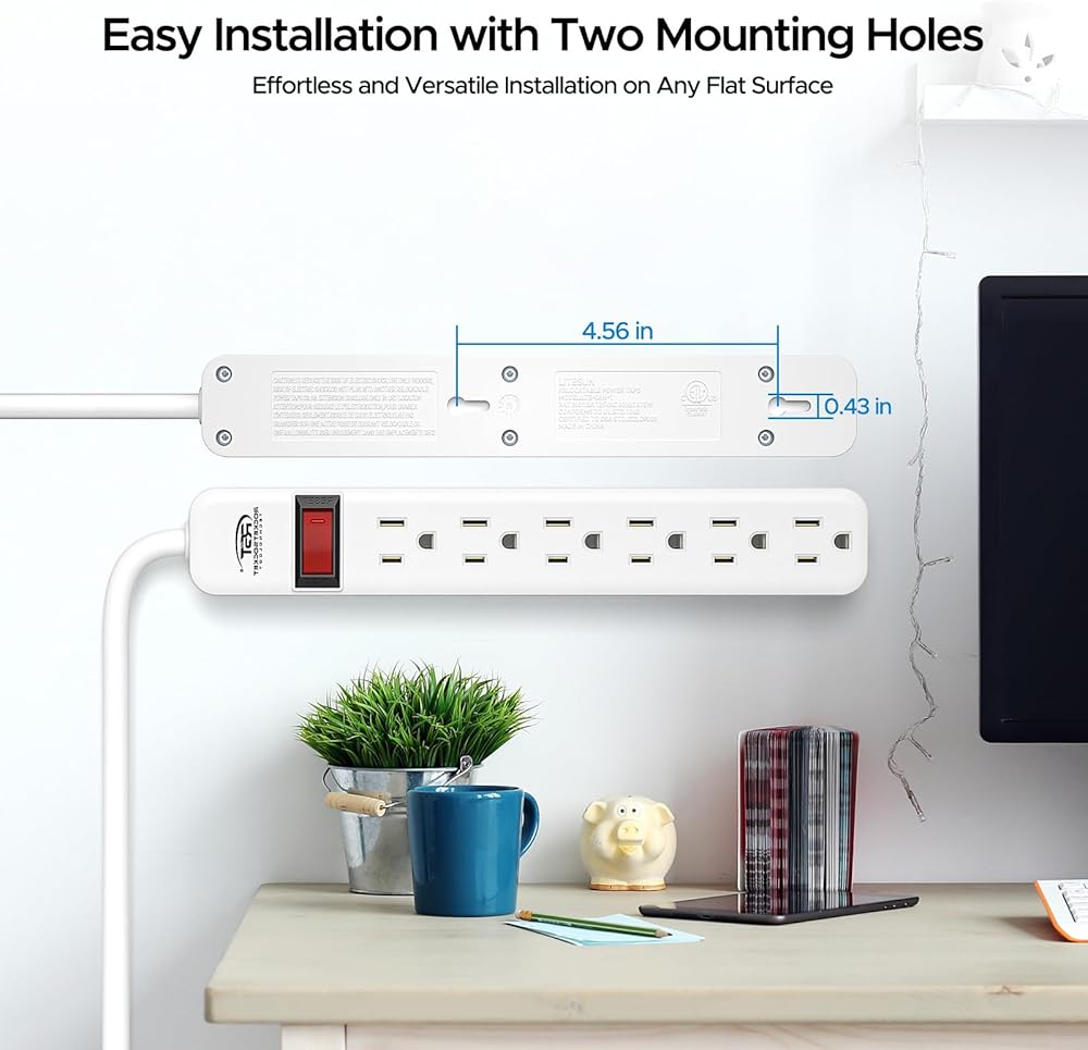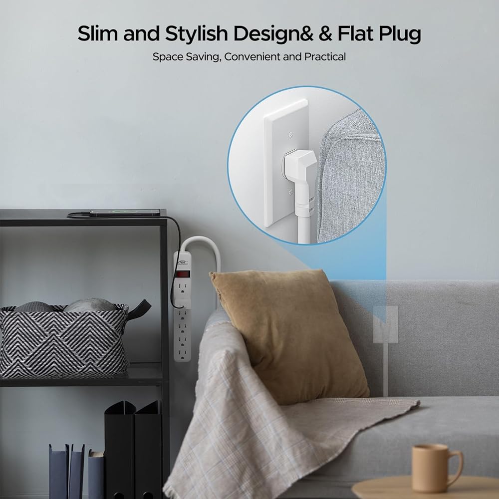 6 Outlets and Flat Plug-It's perfect for use behind sofas, desks, or other furniture where traditional power strips might not fit. The flat plug design also helps to reduce clutter by keeping cords close to the wall.
