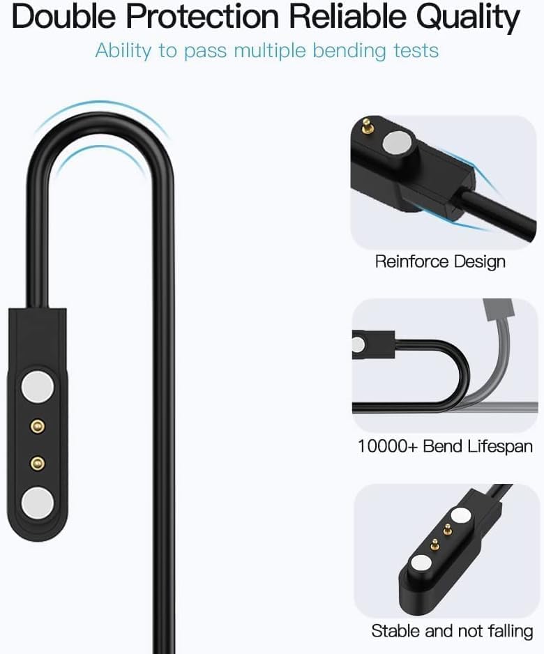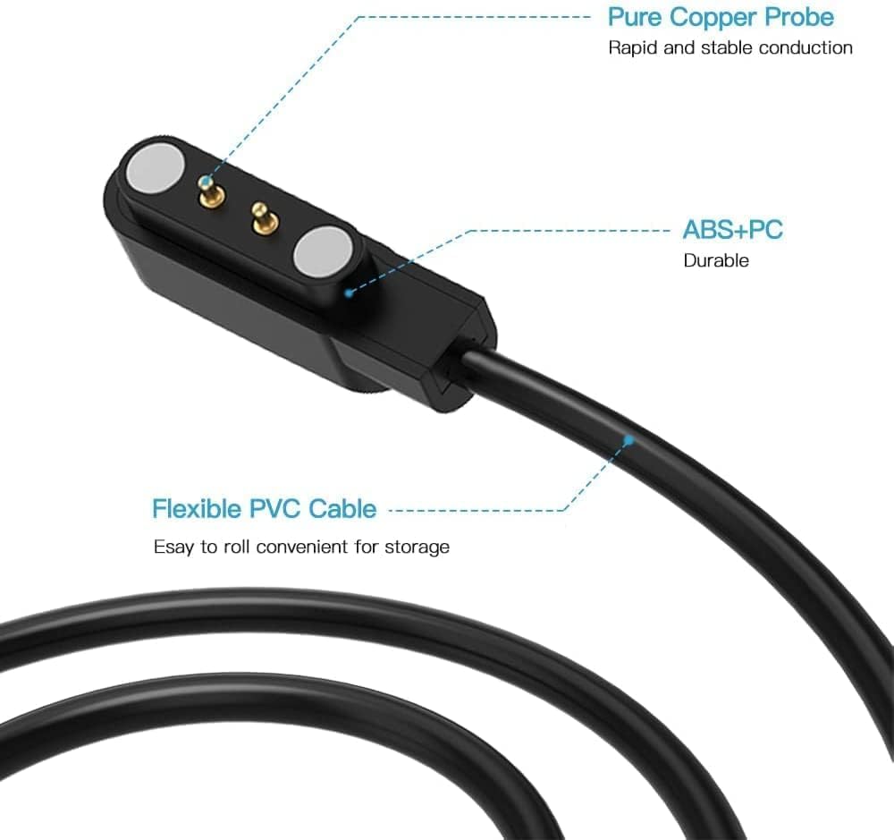【Strong Magnetic Charging】Built-in pure copper probe, this USB charging cable comes with solid magnetic power. It can fast automatically adsorb the watch to charge. Upgraded magnet enhances the charger's efficiency and speed. The magnetic design also won't damage your smartwatch.