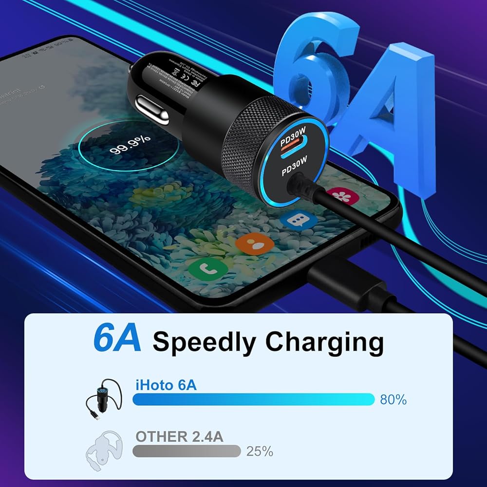 1 Pack 60W Super Fast iPhone 15 Pro Max Car Charger with 3.3 ft USB C Cable