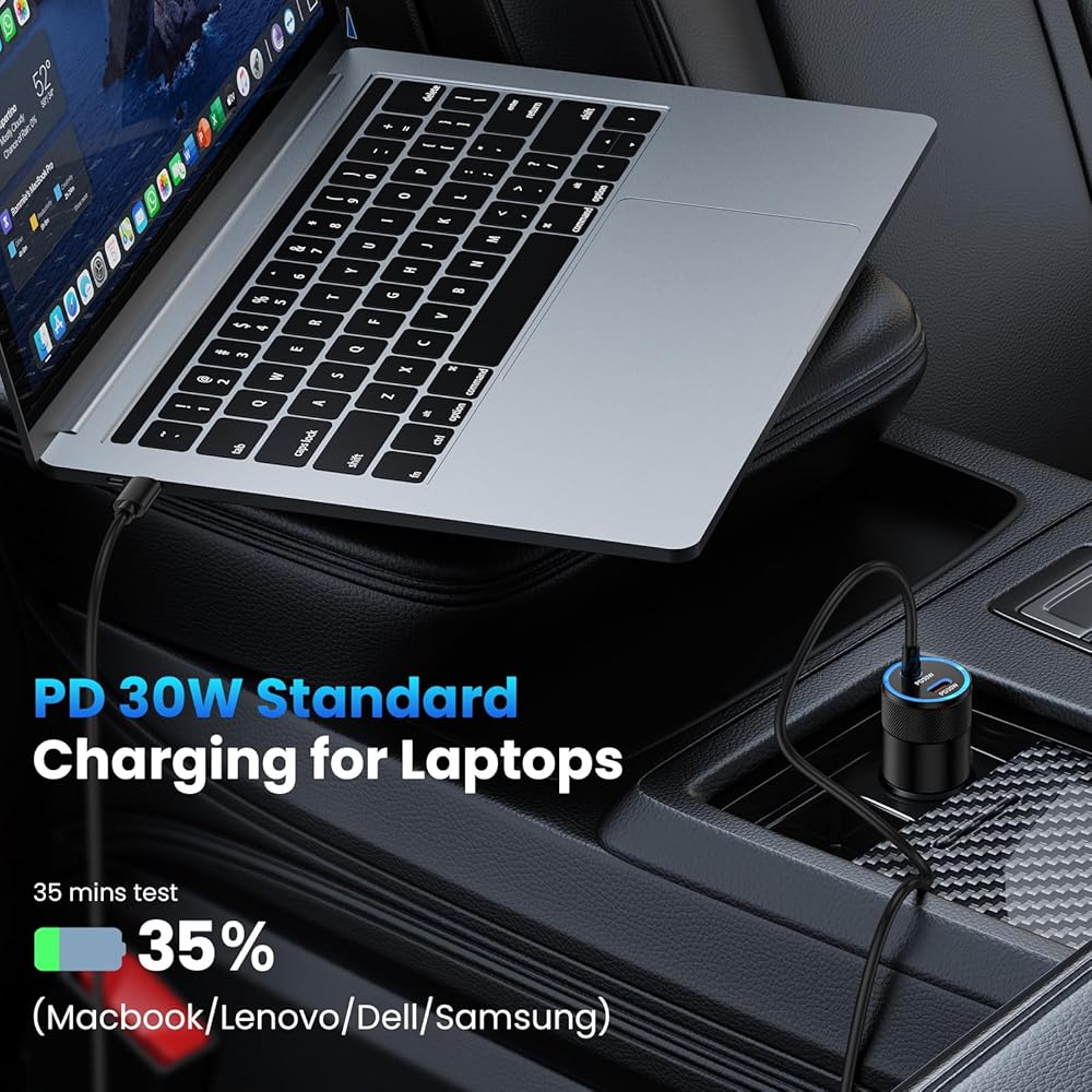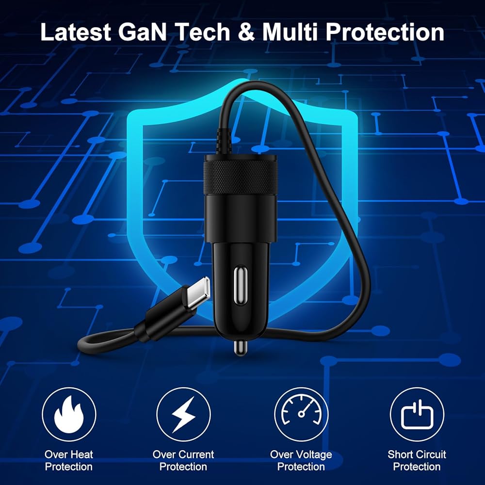 Super fast samsung galaxy a35 car plug is small size but high charging power, fireproof shell keep the car adapter going against overheat and over-load and over-charge.