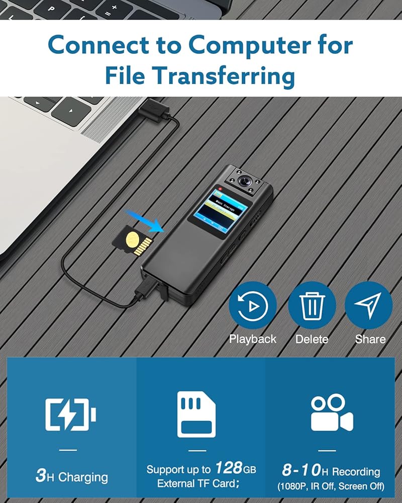 【بطارية داخلية 2200 مللي أمبير في الساعة لتسجيل لفترة طويلة】تأتي كاميرا الجسم BOBLOV A22 مع بطارية ليثيوم مدمجة 2200 مللي أمبير في الساعة، وتشحنها بالكامل لمدة 4 ساعات في المحول القياسي الخاص بك وكابل USB، وتدعم وقت تسجيل لمدة 10 ساعات (1080P، الأشعة تحت الحمراء وإيقاف الشاشة).
