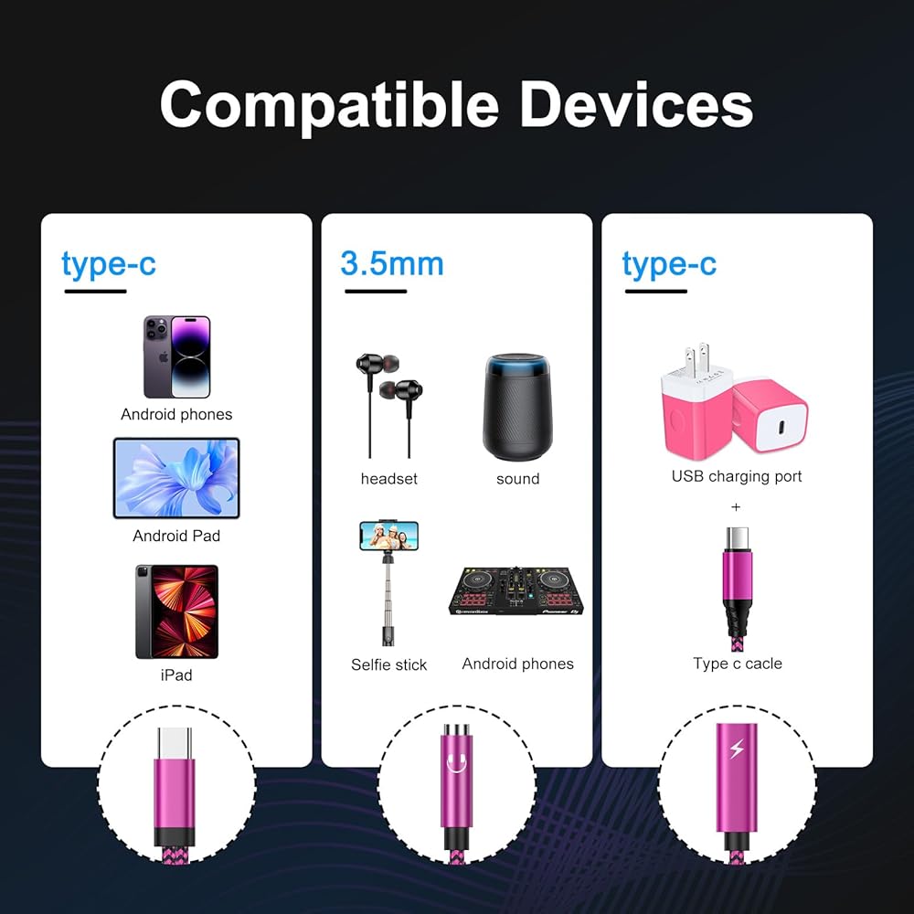 2-in-1 USB C To 3.5mm Audio Charger Adapter