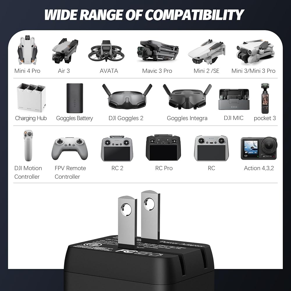 【نطاق واسع من التوافق】 متوافق مع DJI mini 2، mini 2 se، mini 3، mini 3 pro، mini 4 pro، mini 4k، air 2s، avata، avata 2، mavic 3 بدون طيار، وحدة التحكم عن بعد FPV (RC) وحدات التحكم في الحركة وملحقات البطارية؛ متوافق أيضًا مع مثبت DJI osmo mobile om6، om5، om4، om se، rs2، rs3، rs 3 pro وكاميرات الحركة osmo action 3، action 3 و Pocket 2.