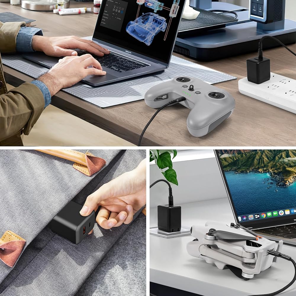 محول طاقة FPVtosky 35 وات، شاحن سريع من النوع C، لـ DJI Mini 4 Pro/Mini 3/Mini 3 Pro/Mini 2 SE/Mavic Mini، Avata/Avata 2، Osmo Pocket 3، Osmo Action 3/4، وحدة تحكم DJI، Hub ,الملحقات، مع كابل C إلى C