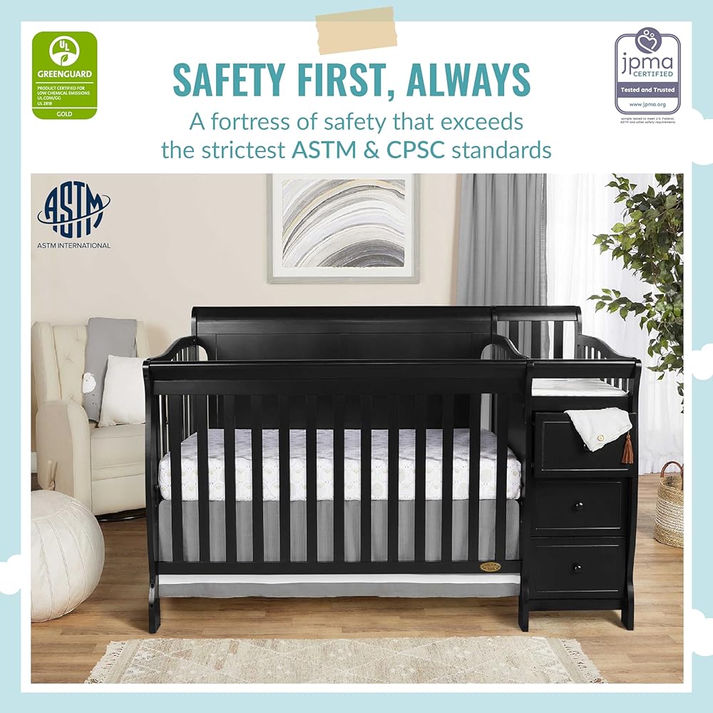 • SAFE AND STURDY: The Brody Full Panel Convertible Crib is JPMA certified, meets/exceeds all ASTM & CPSC standards, and comes with stationary (non-drop side) rails.