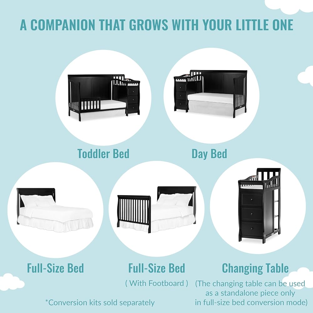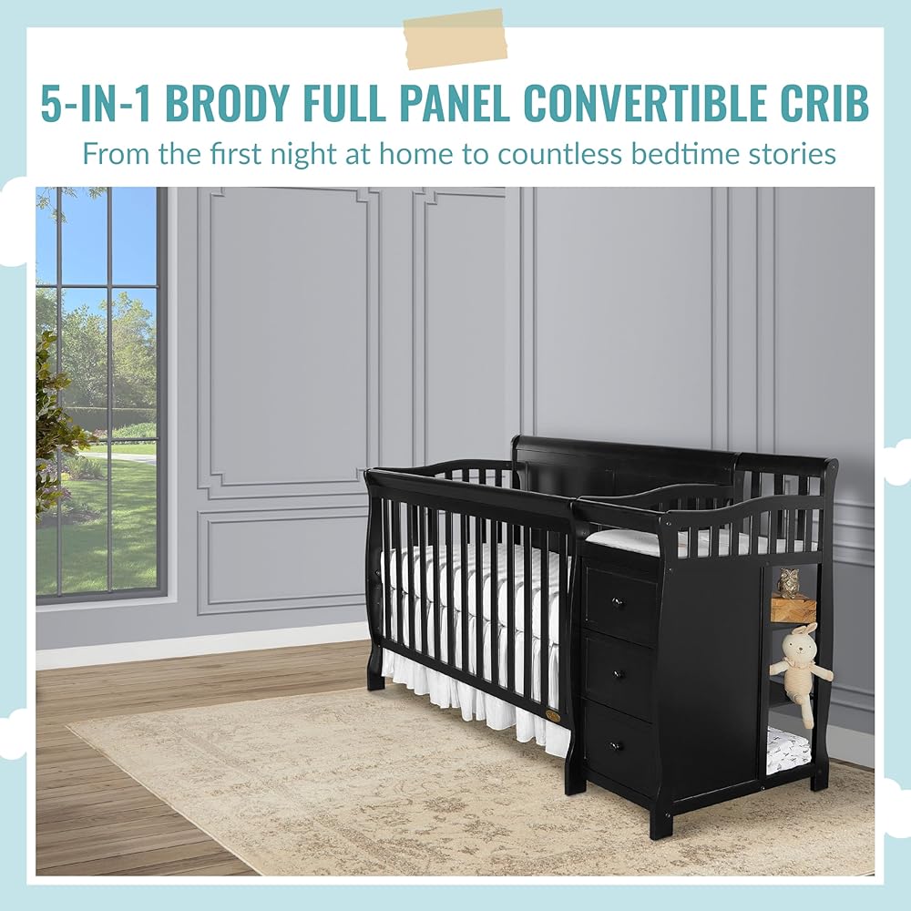 • TRANSITIONS WITH YOUR BABY: The Brody 5-in-1 Full Panel Convertible Crib & Changer easily converts from a crib to a Daybed, Toddler bed, and Full-size Bed (conversion kit sold separately).