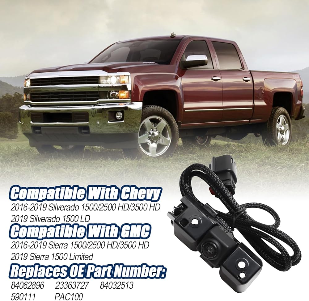 【الإعداد】كاميرا احتياطية للرؤية الخلفية سيلفرادو سييرا متوافقة مع 2016 2017 2018 2019 تشيفي سيلفرادو جي إم سي سييرا 1500 2500 3500 مع قابس الباب الخلفي للطاقة