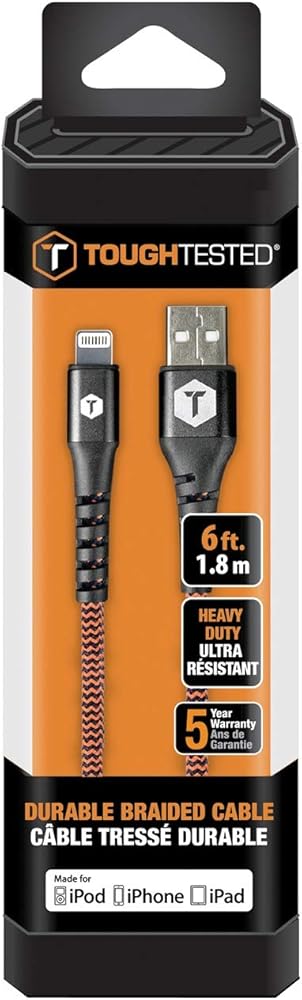 Looking for Lightning cable? Check out this ToughTested tt-fc6-ip2 durable braided USB Type-A to Lightning cable! This cable is designed for use with Apple devices and can both charge and sync.