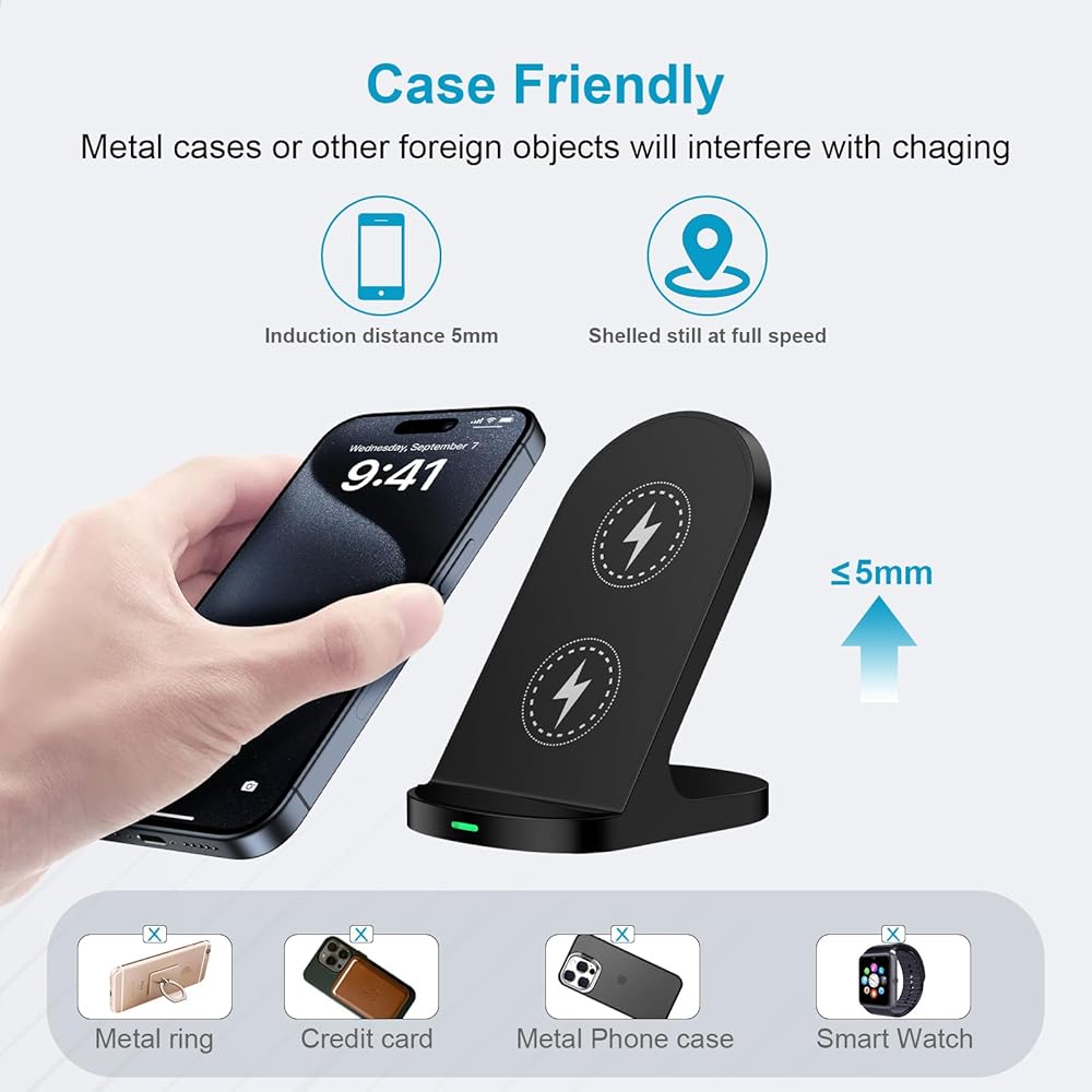 Cases made of metal, attachments such as pop socket, metal ring, magnets, cards, grips will interfere with charging.