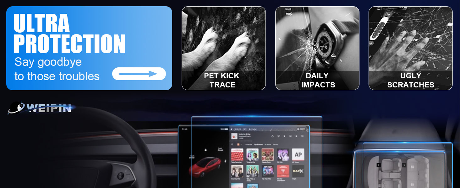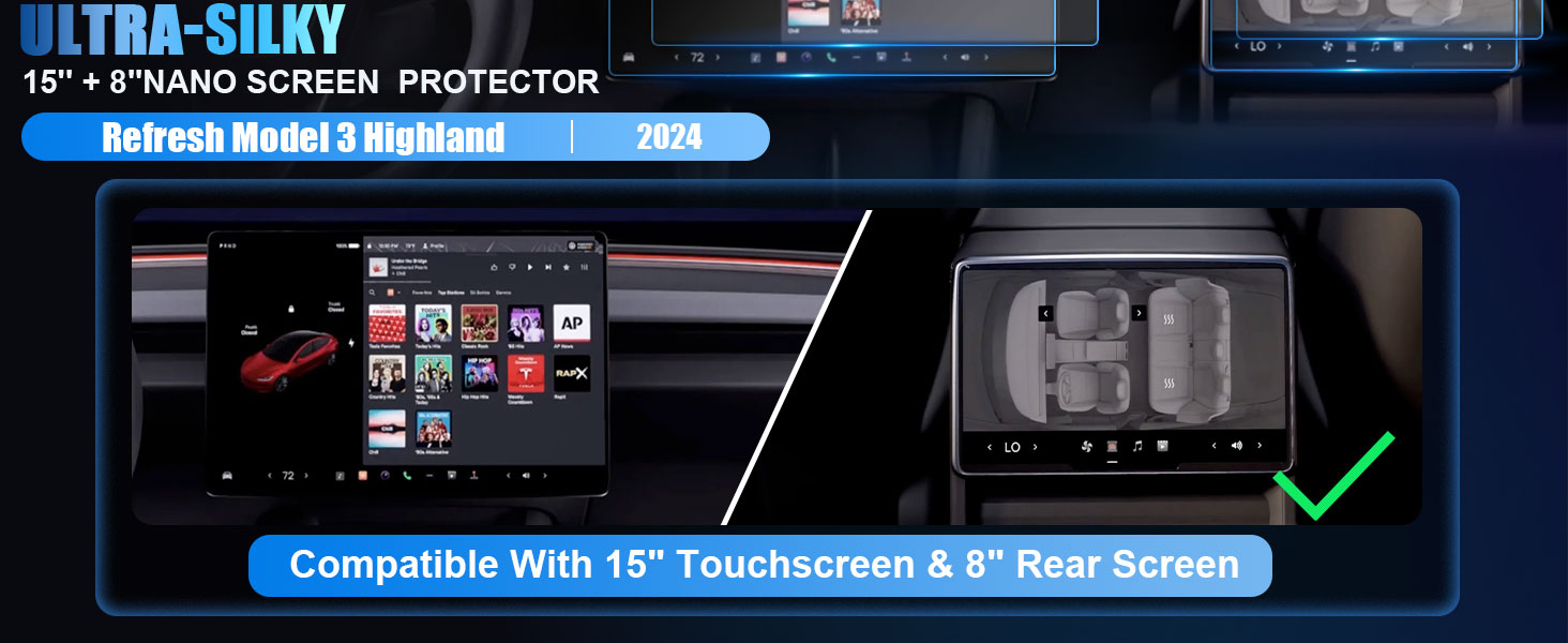 شاشة لمس WEIPIN مقاس 15 بوصة وواقي شاشة خلفي مقاس 8 بوصات مصمم بدقة من أجل ✅202 4 قم بتحديث Tesla Model 3 Highland، مما يضمن ملاءمة دقيقة وخالية من الفقاعات وتتناغم تمامًا مع الجماليات الأصلية لسيارتك.