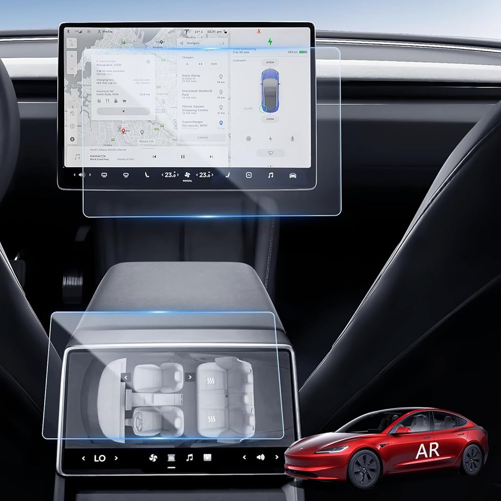 لـ 2024 Tesla Model 3 واقي شاشة Highland [مضاد للوهج] شاشة لمس 15 بوصة وشاشة خلفية 8 بوصة فيلم AR متوافق مع الطراز 3 Highland - HD واضح/مضاد لبصمات الأصابع/ 4 عبوات