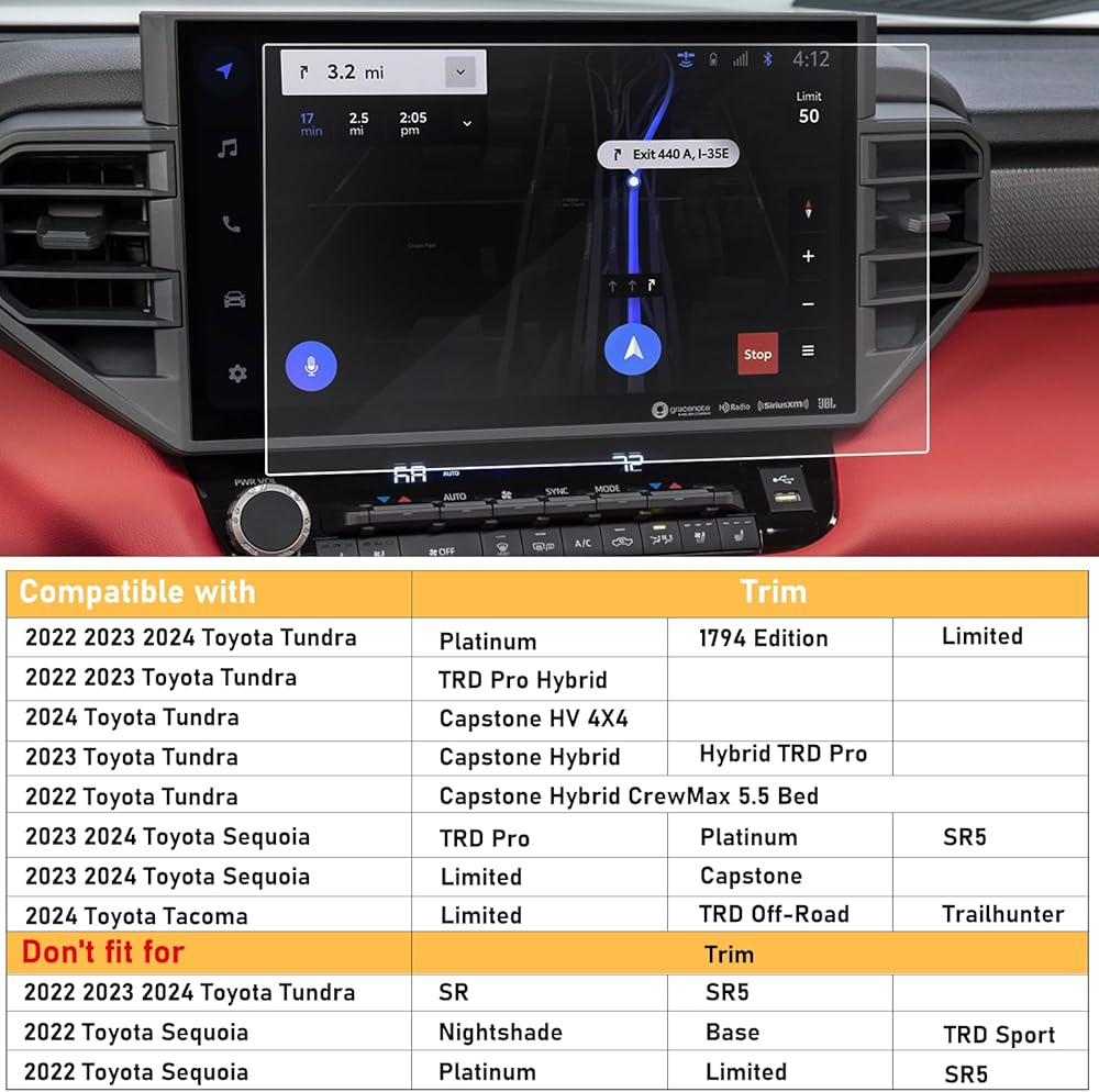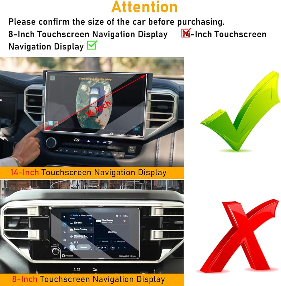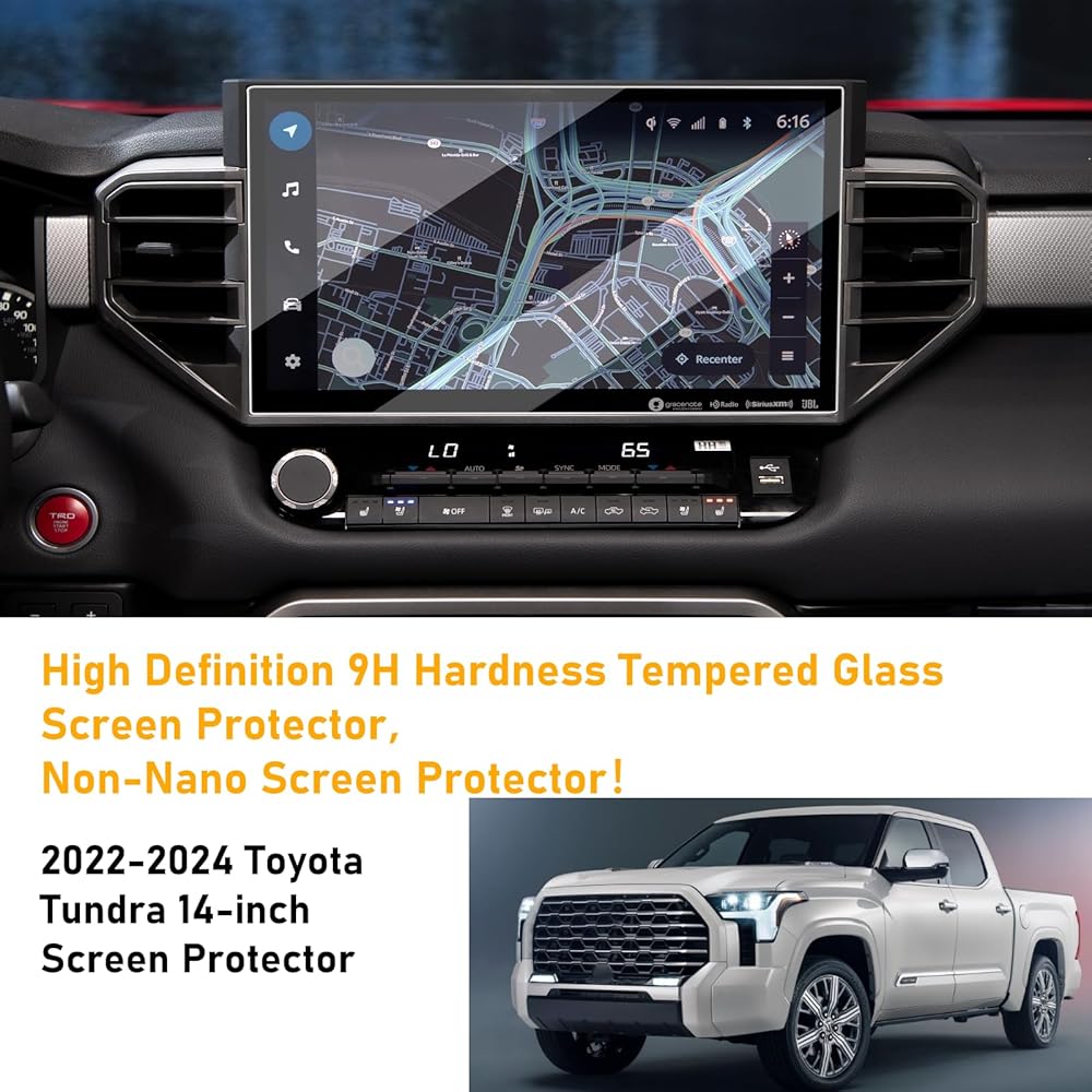 • 【واقي شاشة Toyota Tacoma 2024 مقاس 14 بوصة】واقي شاشة زجاجي مقوى مقاس 14 بوصة من Moonlinks متوافق مع Toyota Tacoma Limited/TRD Pro/Trailhunter. متوافق مع 2022-2024 Toyota Tundra 2022-2023 2024 Limited/Platinum/1794 Edition/TRD Pro/Capstone. متوافق مع 2023-2024 Toyota Sequoia Limited/Platinum/TRD Pro/Capstone/SR5. يرجى التأكد من نظام الملاحة GPS الأصلي مقاس 14 بوصة مثل صورة العرض قبل شراء واقي شاشة تندرا 2022-2024.