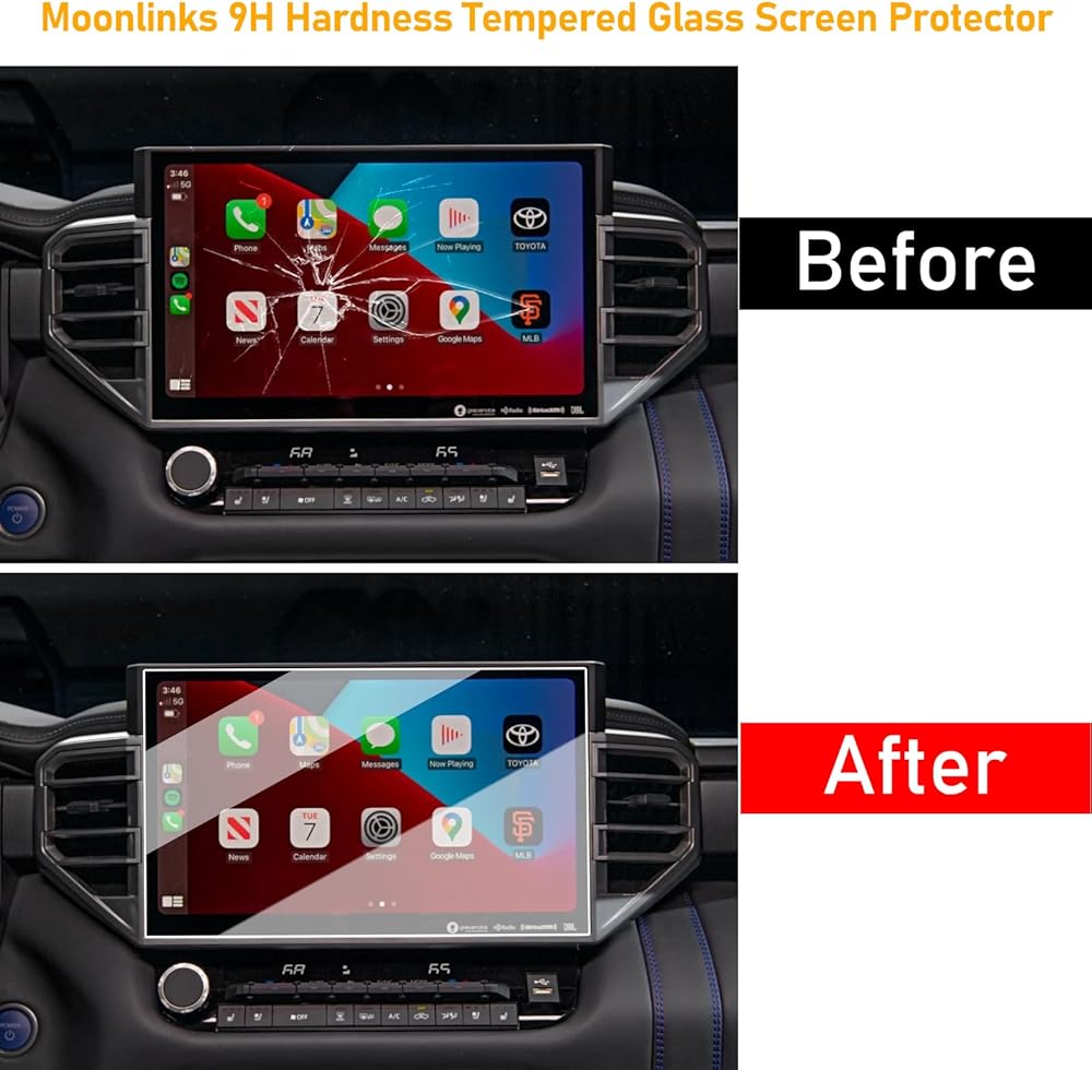 Moonlinks متوافق مع 2024 Toyota Tacoma Limited/TRD Pro/Trailhunter 14" واقي شاشة زجاجي مقسى، 9H صلابة راديو عرض واقي شاشة 14 بوصة لـ 2022-2024 تندرا و2023 2024 سيكويا